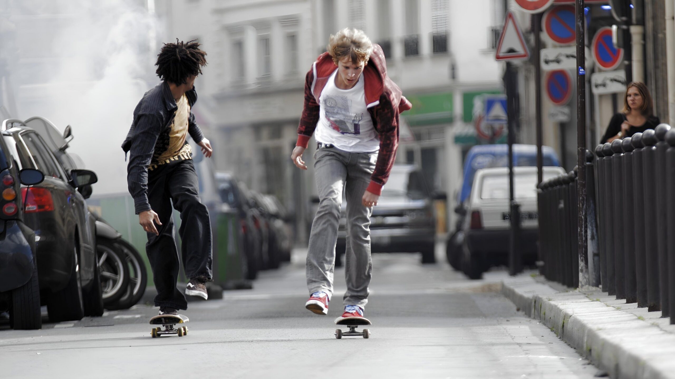 Jérôme and Benjamin are two young skateboarders whose carefree existence is turned upside down when they witness the murder of a drug dealer. Rumbled by the assassins they manage to escape. Taking refuge in a police station they then discover that the criminals are actually the crooked cops. Then begins a relentless chase through the streets of Paris as Jérôme and Benjamin attempt to outwit their unscrupulous pursuers… Utilising real Paris locations and two of France’s top street skaters, Skate Or Die is an adrenalin rush thriller for the Red Bull generation.