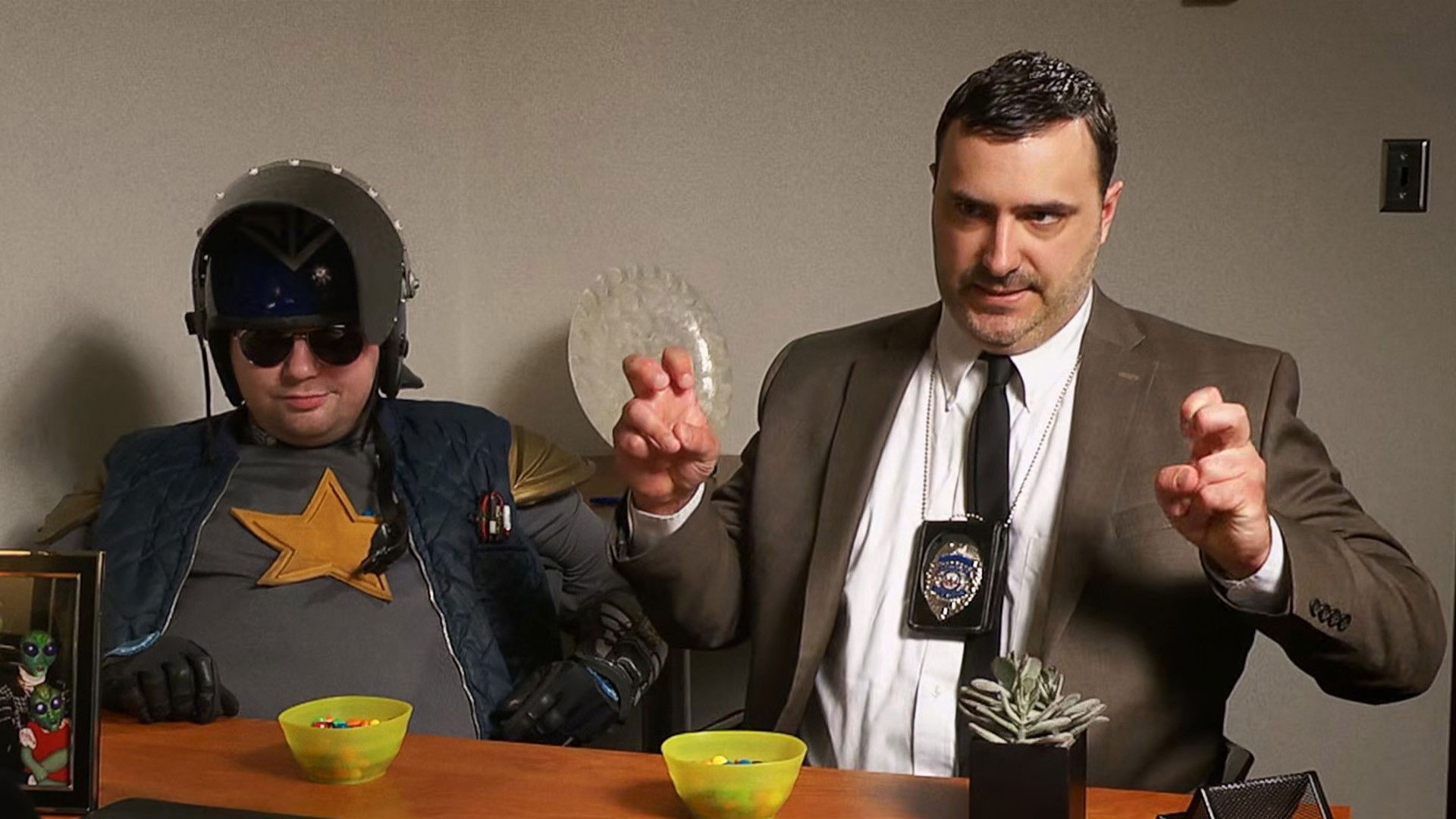 Space Cop is the story of a cop from the future of space who travels back in time to the present and is teamed up with a cop from the past who is unfrozen in the present. Together, they must defeat evil aliens with a sinister plan.