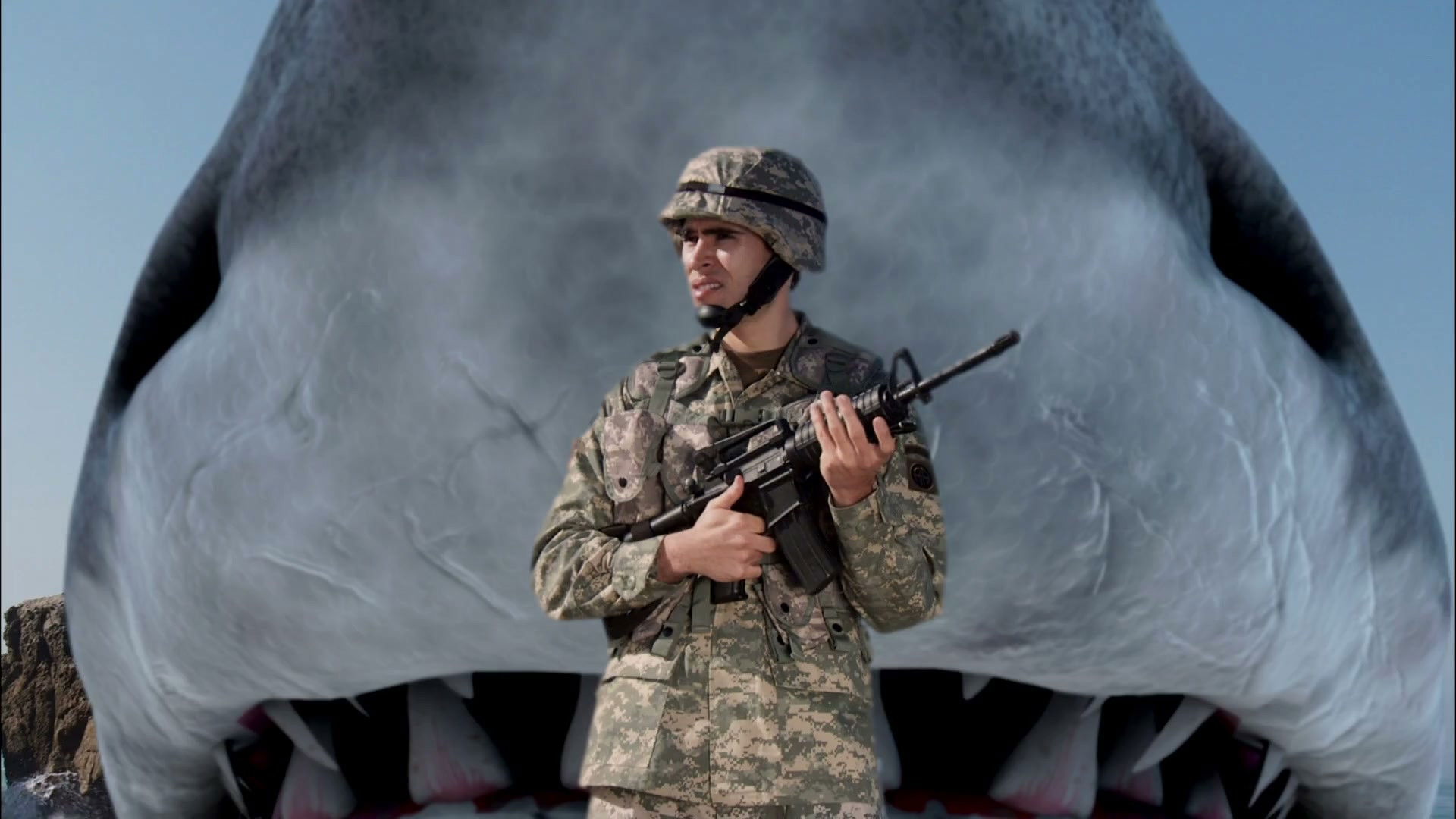 An offshore drilling accident triggers the release of a giant prehistoric shark. When marine biologist Kat Carmichael arrives, she runs up against corporate front man Roger Wade, who plots with Stewart to disrupt her investigation. With the help of Skipper Chuck and disc jockey Dynamite Stevens, Kat tries to find a way to defeat the monster which has evolved to a state where it can walk on dry land and fly…it’s the SUPER SHARK!