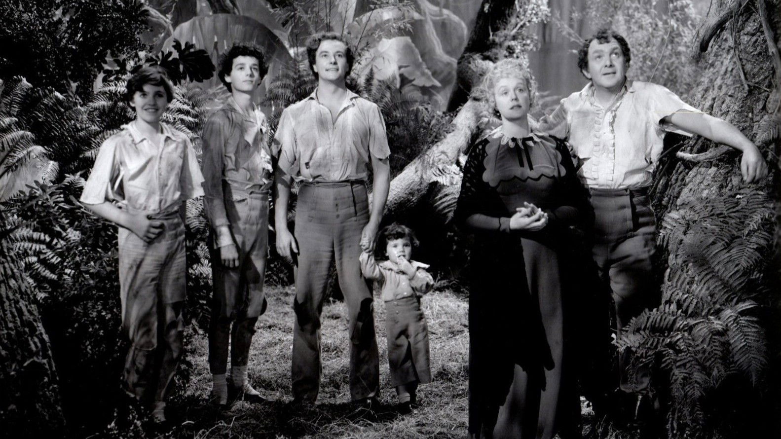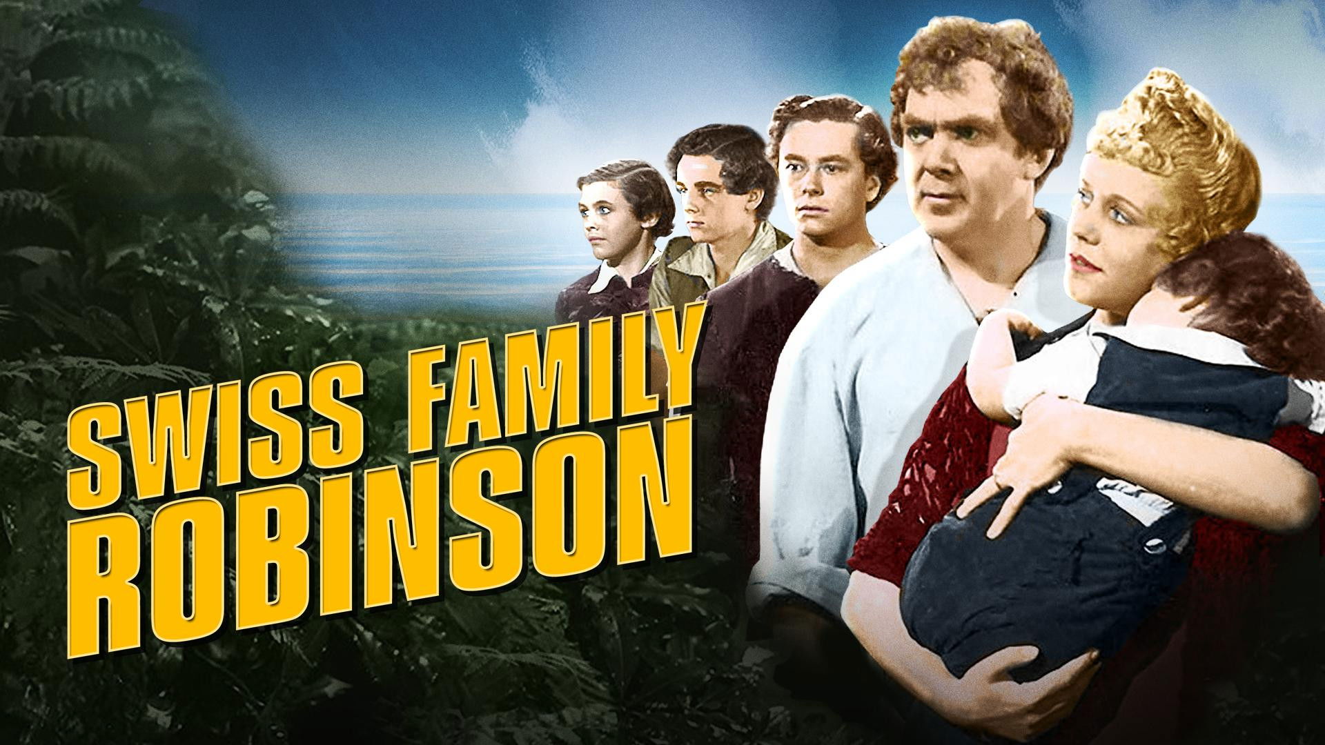 A family setting out for a new life across the sea is shipwrecked on a deserted island. The family members collaborate to create a home for themselves in the jungle environment.