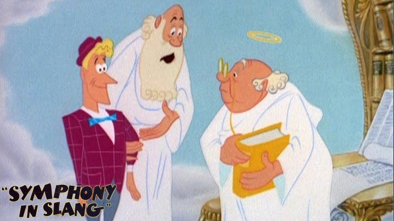 At the gates of Heaven, the admitting officials have a hard time understanding a newcomer’s life story with all his contemporary slang.