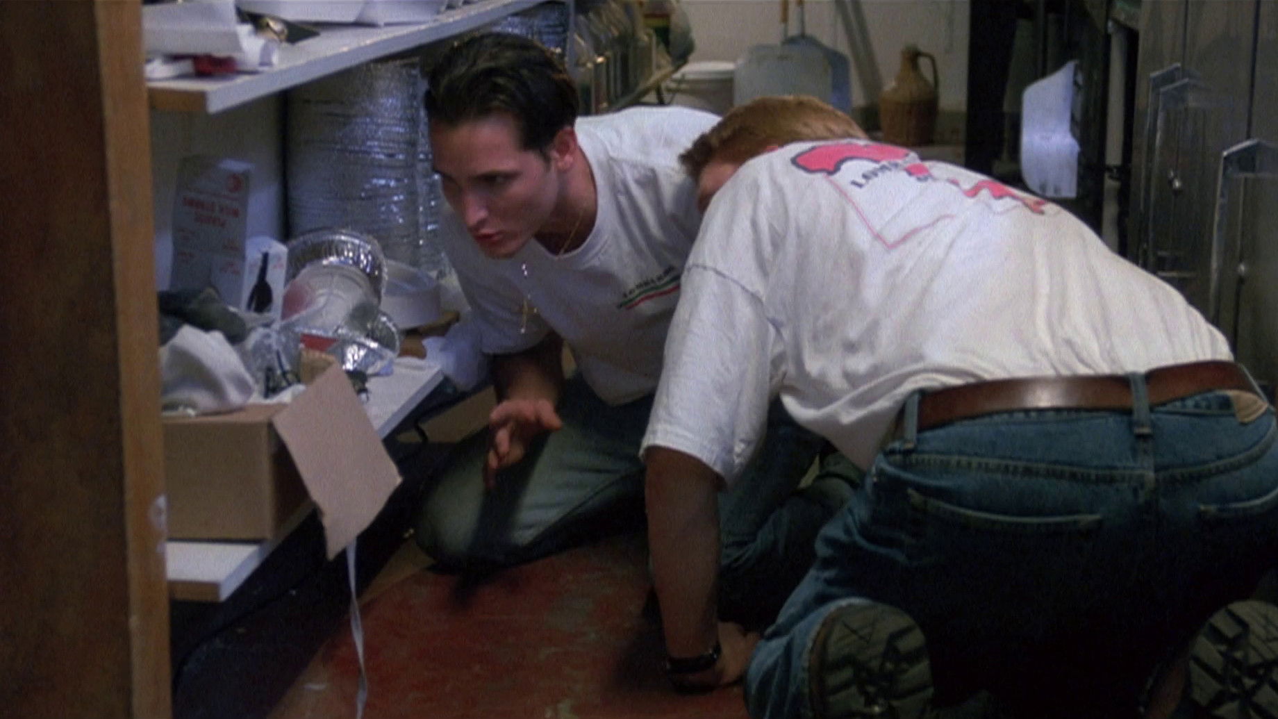 Instead of moving on to bigger and better things after college graduation, two best buddies are embarrassed to find themselves working at a pizza parlor and avoiding old classmates who come in for a slice.