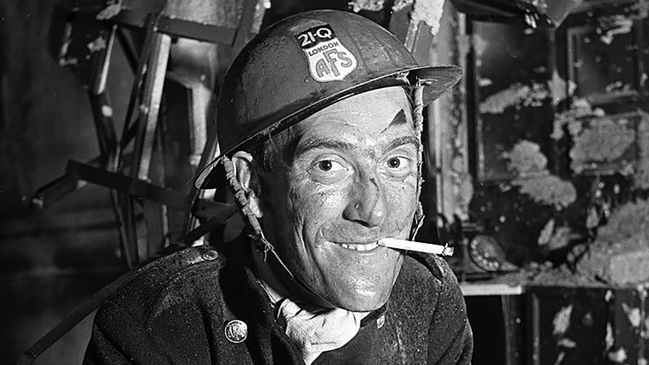 Comedian Tommy Trinder plays it straight in this tribute to the wartime AFS (Auxiliary Fire Service). The dedicated band who kept the fires of London under control during the blitz and fire bombings of WWII.