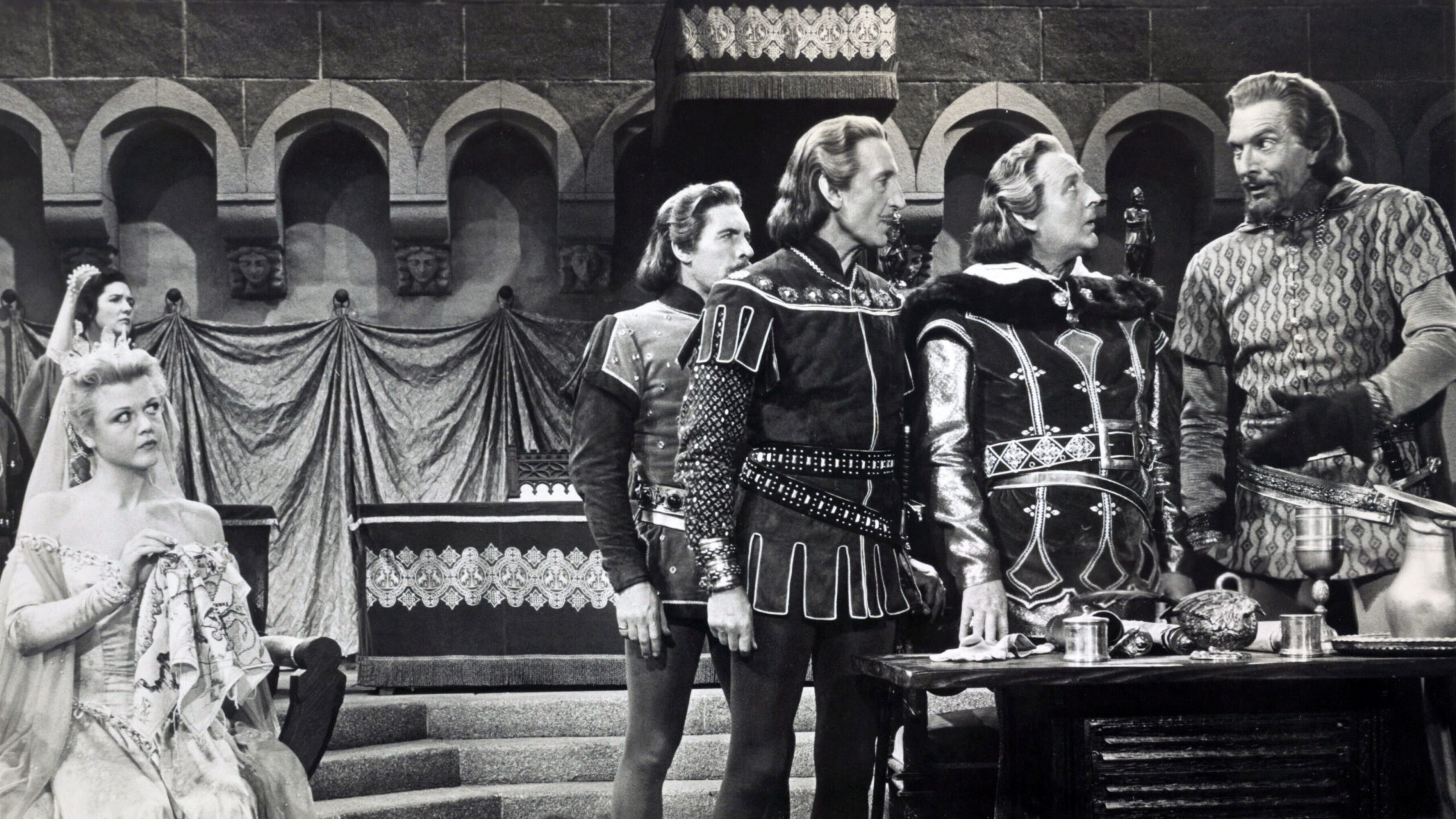 A hapless carnival performer masquerades as the court jester as part of a plot against a usurper who has overthrown the rightful king of England.