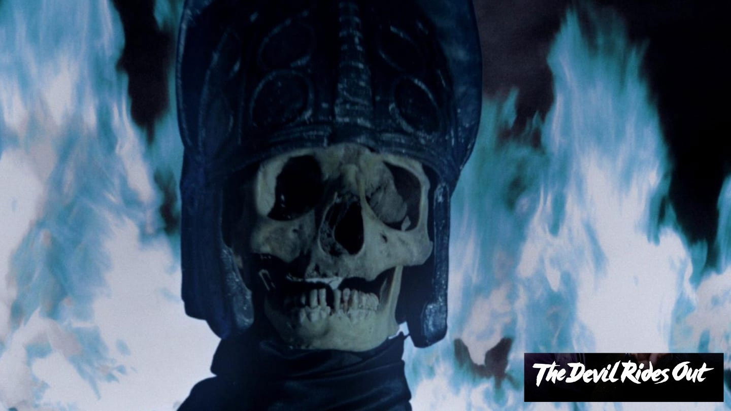 The powers of good are pitted against the forces of evil as the Duc de Richelieu wrestles with the charming but deadly Satanist, Mocata, for the soul of his friend. Mocata has the knowledge and the power to summon the forces of darkness and, as the Duc de Richelieu and his friends remain within the protected pentacle, they are subjected to ever-increasing horror until thundering hooves herald the arrival of the Angel of Death.