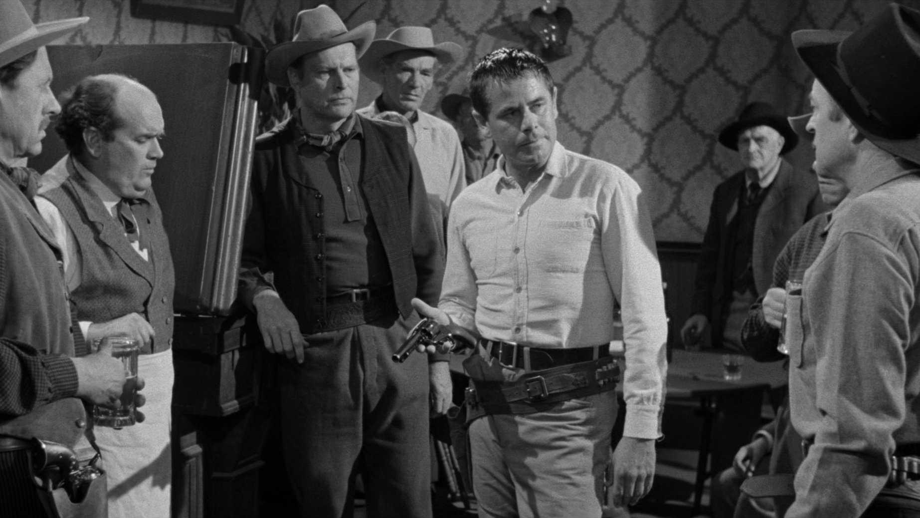 Whenever it becomes known how good he is with guns, ex-gunman George and his wife Dora have to flee the town, in fear of all the gunmen who might want to challenge him. Unfortunately he again spills his secret when he’s drunk. All citizens swear to keep his secret and support him to give up his guns forever — but a boy tells the story to a gang of wanted criminals. Their leader threatens to burn down the whole town, if he doesn’t duel him.