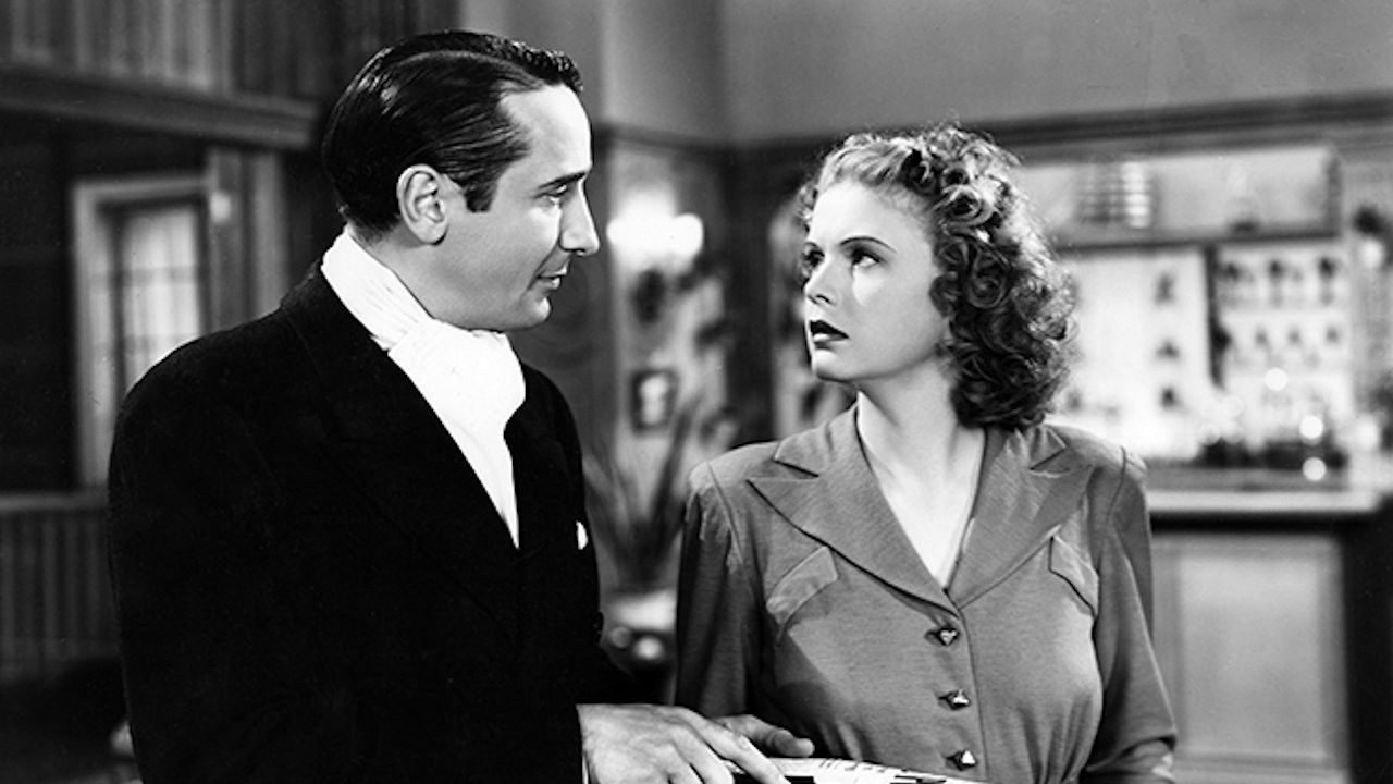 A hardworking secretary for a rich woman finds herself engaged to the woman’s son and accused of a murder she didn’t commit.