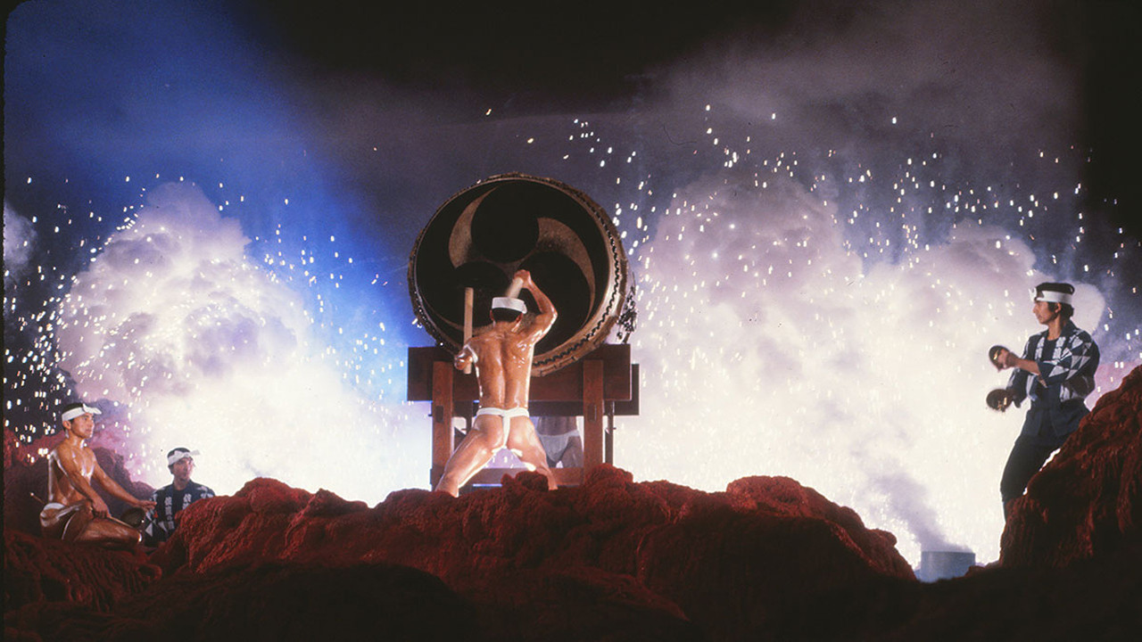 A documentary profiling a Japanese taiko drumming group based in the remote Sado Island, Japan. The film blurs the line between real-life documentary footage of the troupe’s training and practice regimes, and staged performances of their varied musical acts, with sets designed by artist Tadanori Yokoo and an additional experimental electronic music score by Toshi Ichiyanagi.