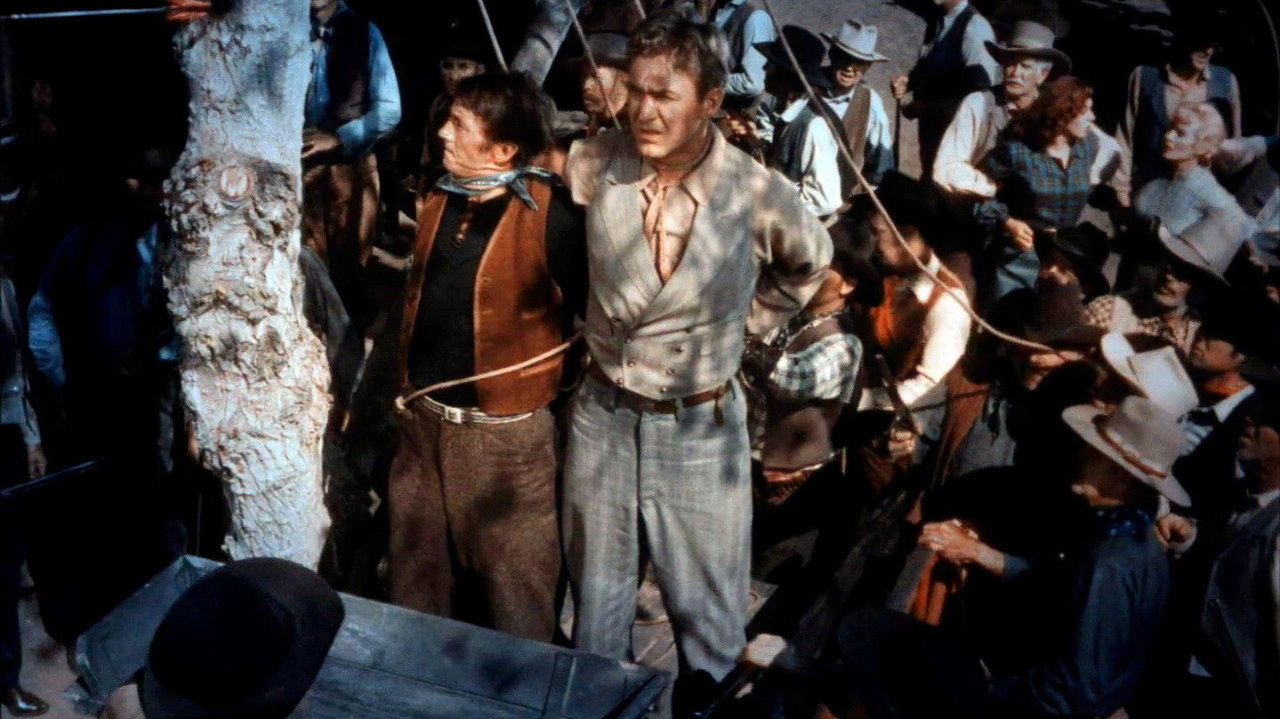 Hero Rod Cameron kills Sheriff Sam Borden at point-blank range and in front of several witnesses in the opening of this Republic Pictures Western, released in the company’s patented Trucolor system. The “killing,” however, is merely a ruse set up to allow army agent Johnny Drum to infiltrate a gang of highway robbers.