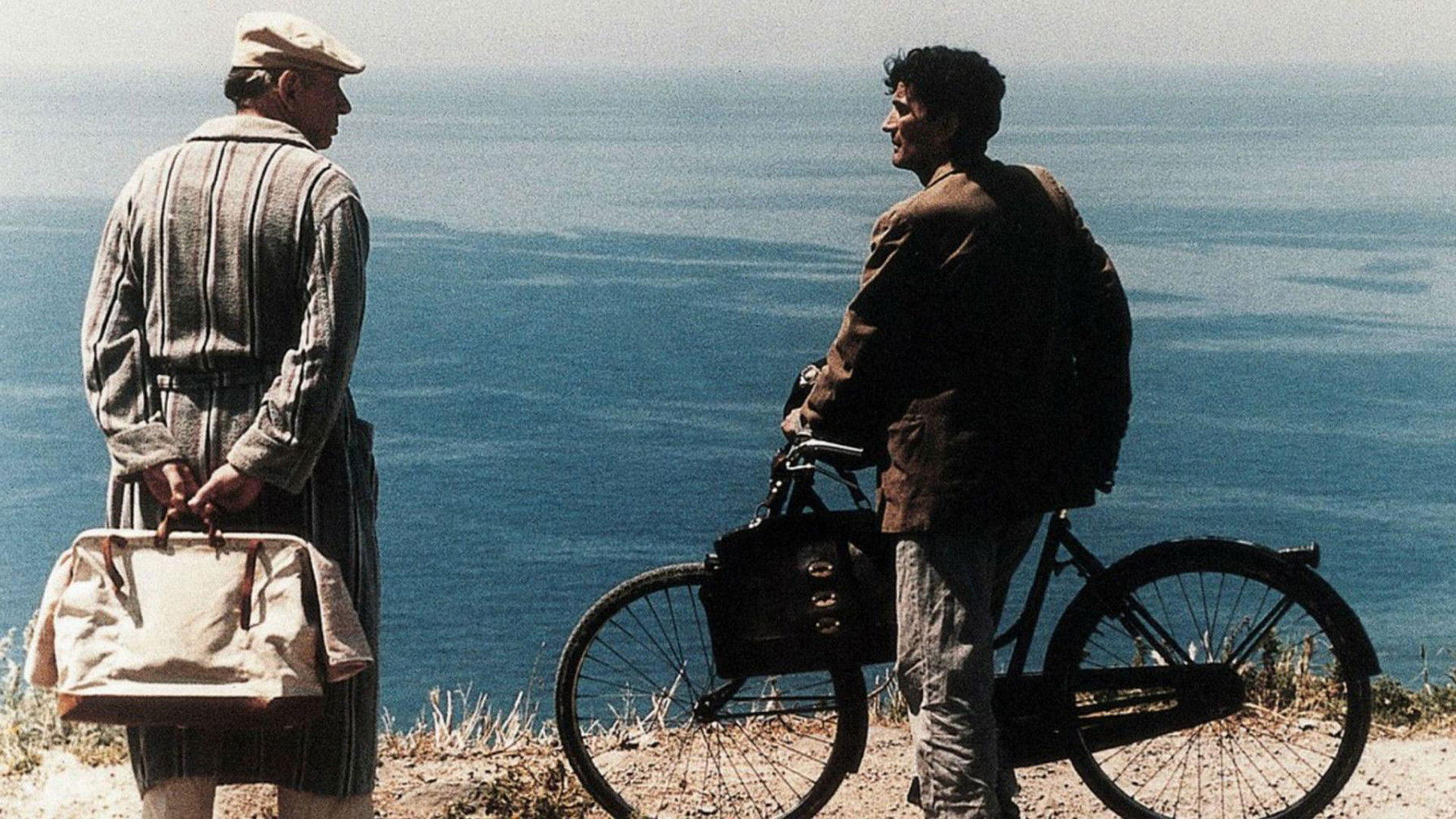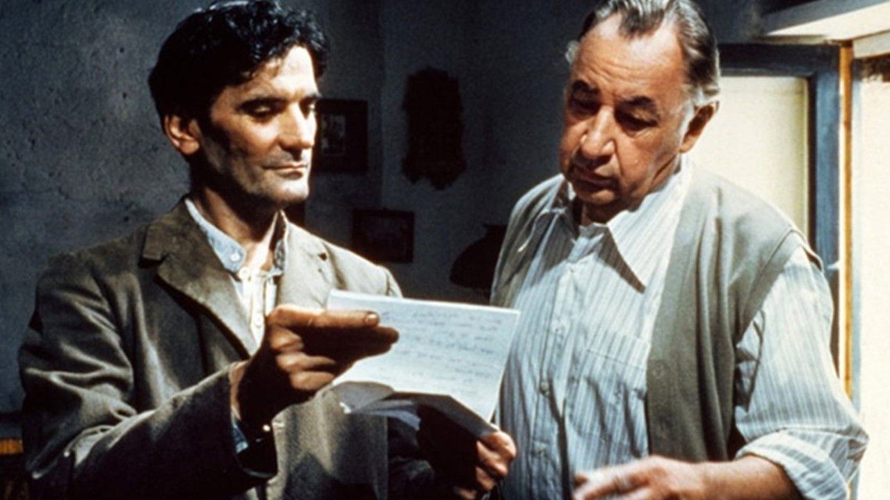 Simple Italian postman learns to love poetry while delivering mail to a famous poet; he uses this to woo local beauty Beatrice.