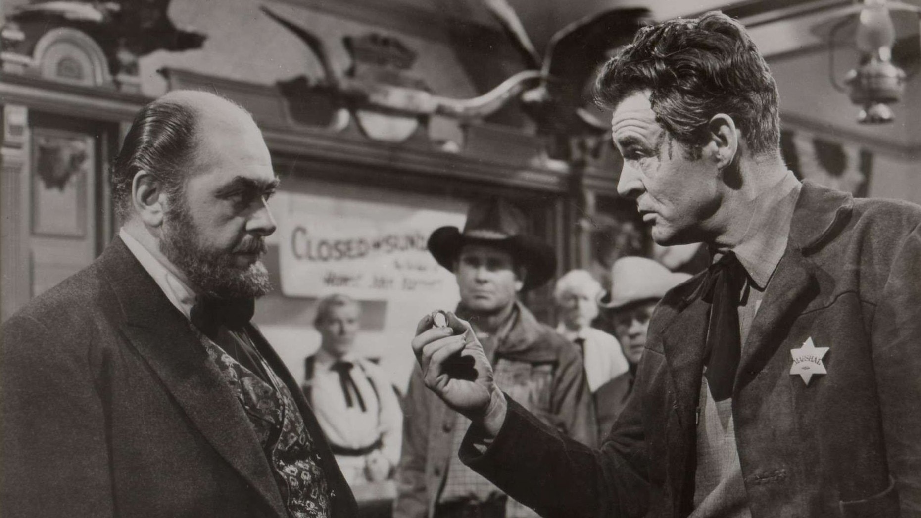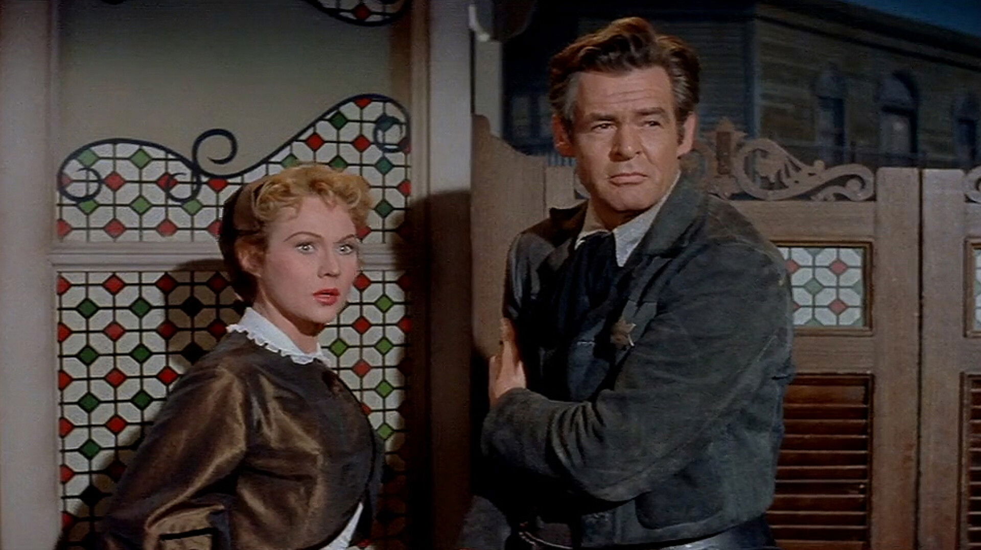 Robert Ryan plays an aging sheriff responsible for law and order in a frontier cattle town. Virginia Mayo plays his fiancee. As if handling wild cattle drovers isn’t enough, a crooked casino operator from Ryan’s past comes to town. An early scuffle in the casino leaves Ryan with vision problems that interfere with his duties. Jeffrey Hunter who came to town with a cattle drive encounters Ryan, who killed Hunter’s father when Hunter was young. Feelings of animosity soon change as Hunter begins to sense Ryan is telling the truth about his father. What follows is a plot that continues to thicken to the inevitable showdown.