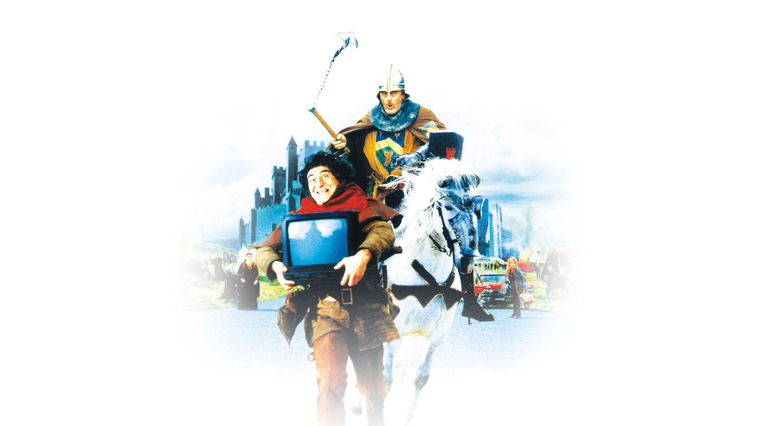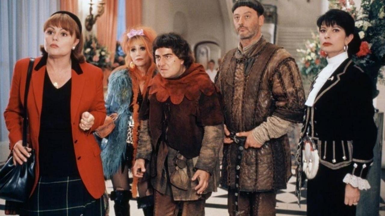 The sequel to The Visitors reunites us with those lovable ruffians from the French Medieval ages who – through magic – are transported into the present, with often drastic consequences. Godefroy de Montmirail travels to today to recover the missing family jewels and a sacred relic, guarantor of his wife-to-be’s fertility. The confrontation between Godefroy’s repellent servant Jack the Crack and his descendent, the effete Jacquart, present-day owner of the chateau, further complicates the matter.