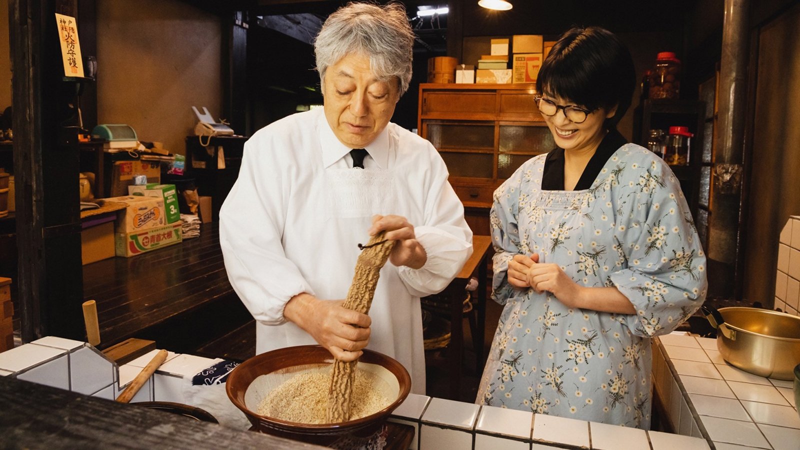 Tsutomu lives alone in the mountains, writing essays, cooking Zen food with the vegetables he grows and the mushrooms he picks in the hills. His routine is happily disturbed when Machiko, his editor and love interest, occasionally visits. Tsutomu seems content with his daily life. On the other hand, he still hasn’t let go of his wife’s ashes, although she died 13 years ago.
