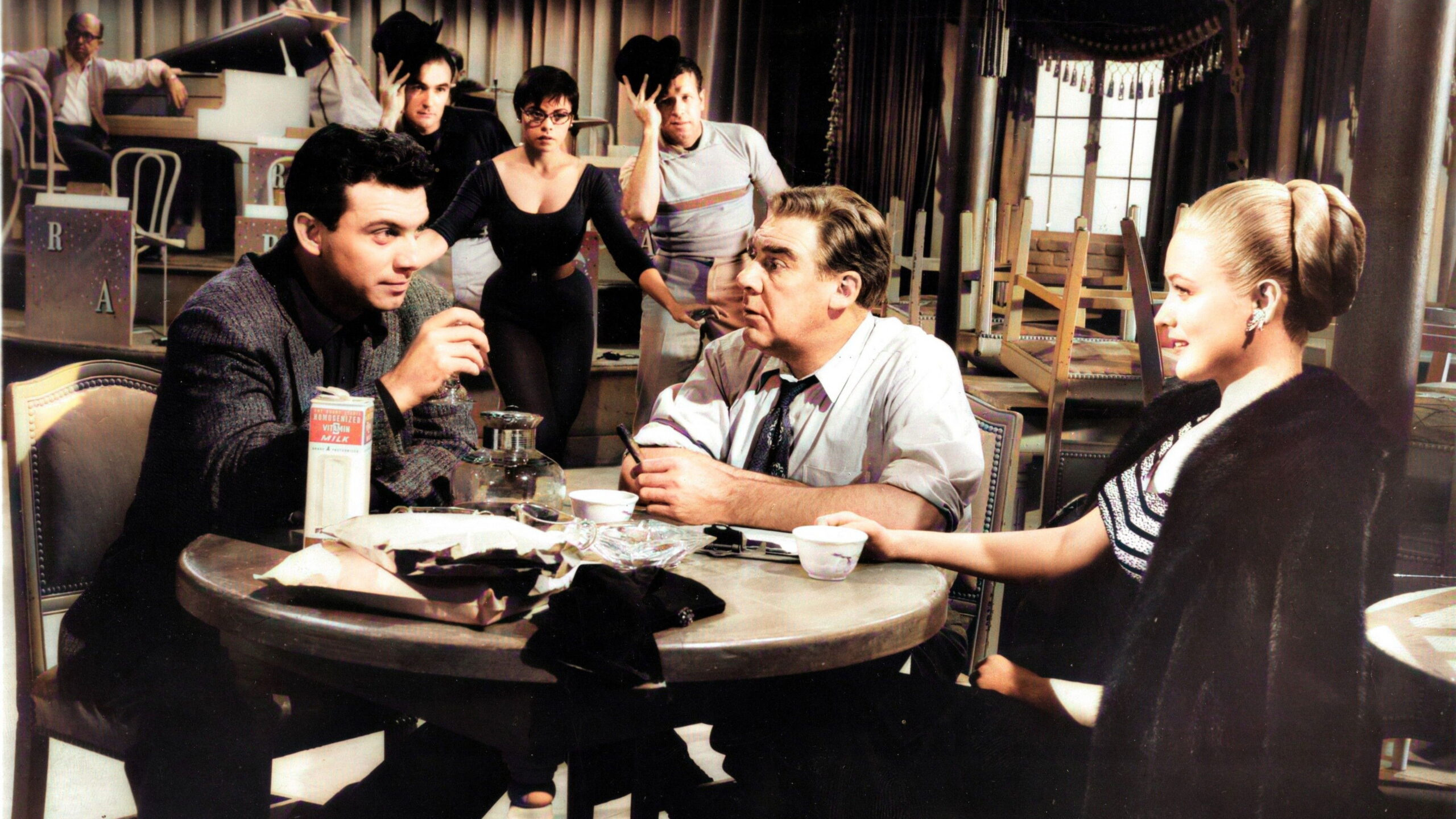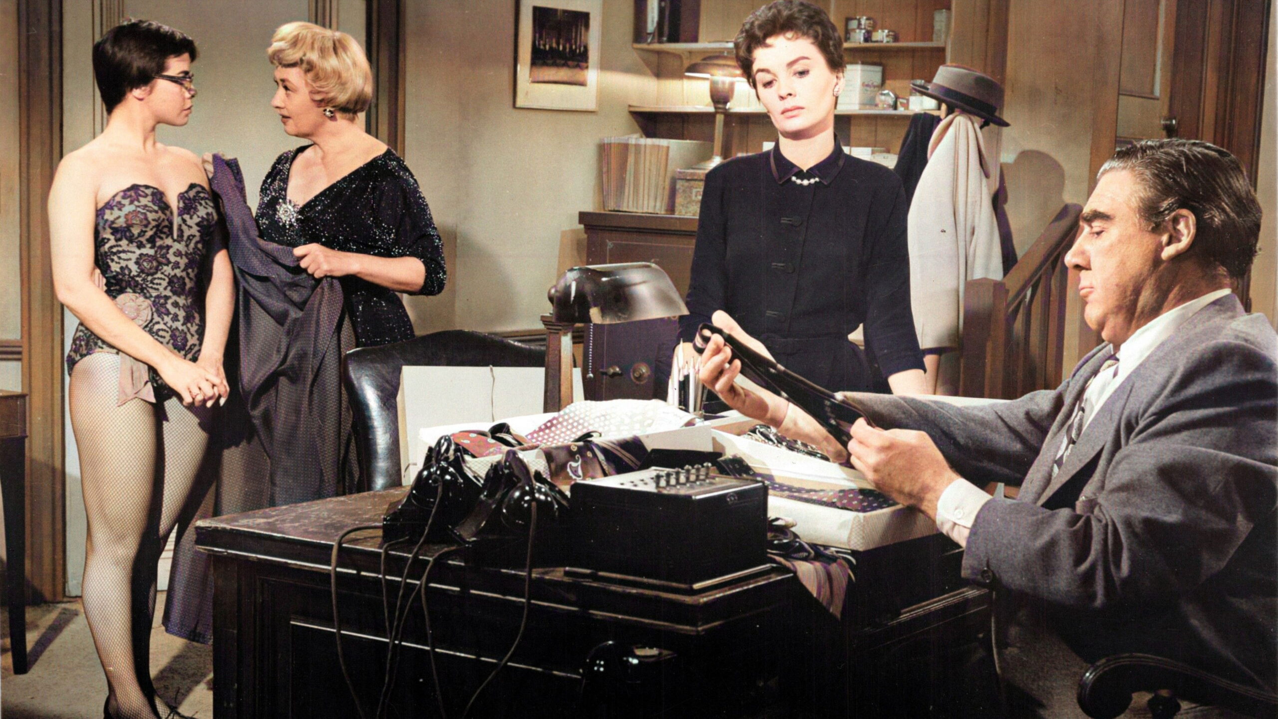 To earn extra money, a prim schoolteacher takes a second job as secretary to the uncouth owner of a boisterous nightclub.