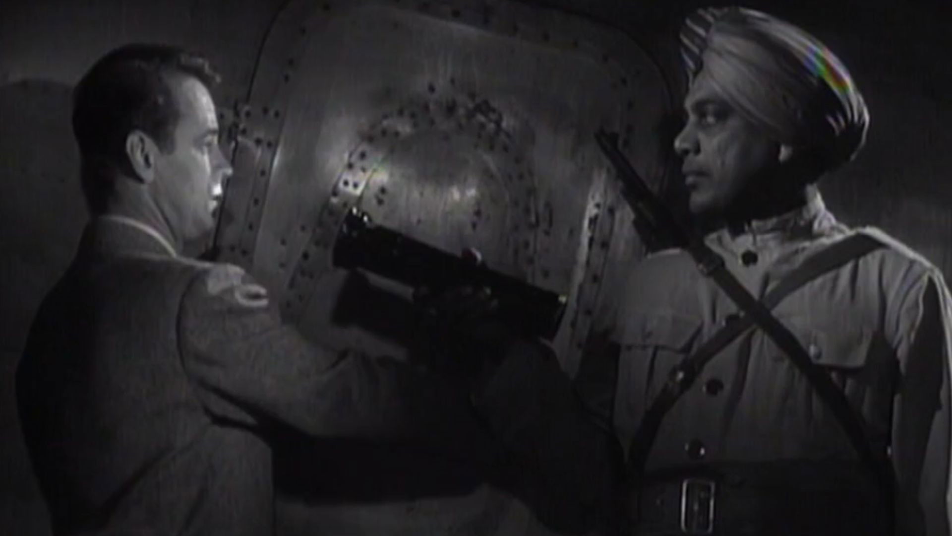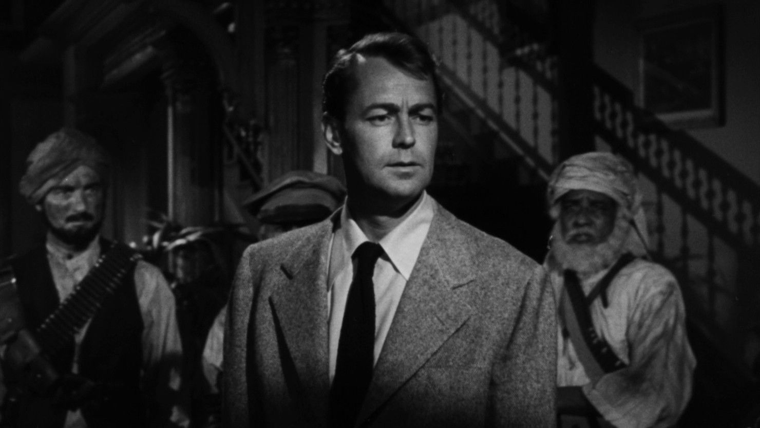 During India’s first years of independence from Britain, Steve Gibbs lands his armaments loaded plane in Ghandahar province hoping to get rich. Pacifist Prime Minister Singh hopes to reach an agreement with guerilla leader Khan, the maharajah is a fool, and the British residents are living in the past. Steve’s love interest is Joan Willoughby, the blind daughter of a parson.