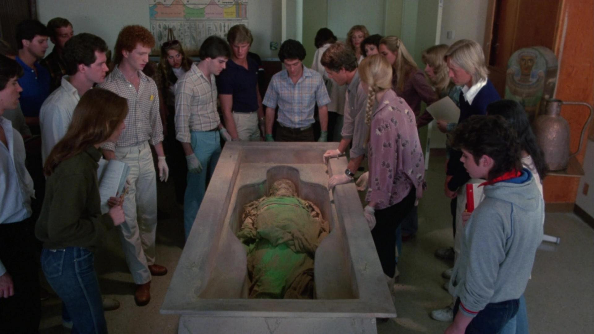 From deep within the tomb of the Egyptian pharaoh Tutankhamun, Professor Douglas McCadden ships the coffin of Ankh-Vanharis to the California Institute of Sciences where X-rays reveal five diamond-like crystals hidden within the coffin. Technician Peter Sharpe steals the crystals but doesn’t notice that the powerful X-ray has revived a green fungus. When the coffin is opened at a university press conference, the reporters uncover more than they bargained for. The mummy has disappeared… and the Time Walker is alive again!