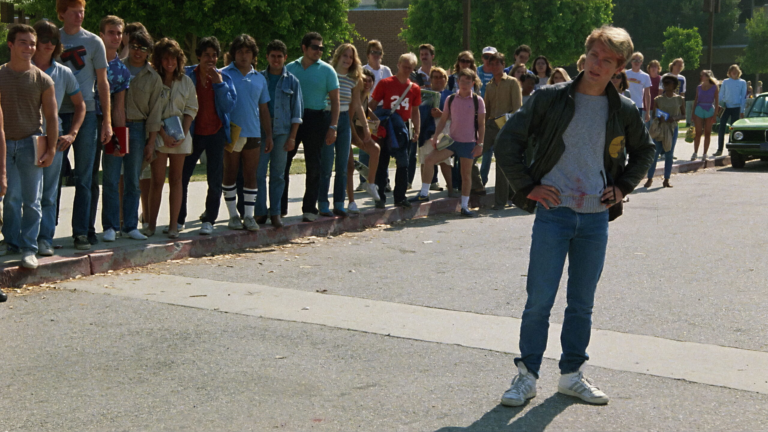 The new guy in a Los Angeles high school, Morgan, does some singing and fights hotshot Nick over disco dancer Frankie.