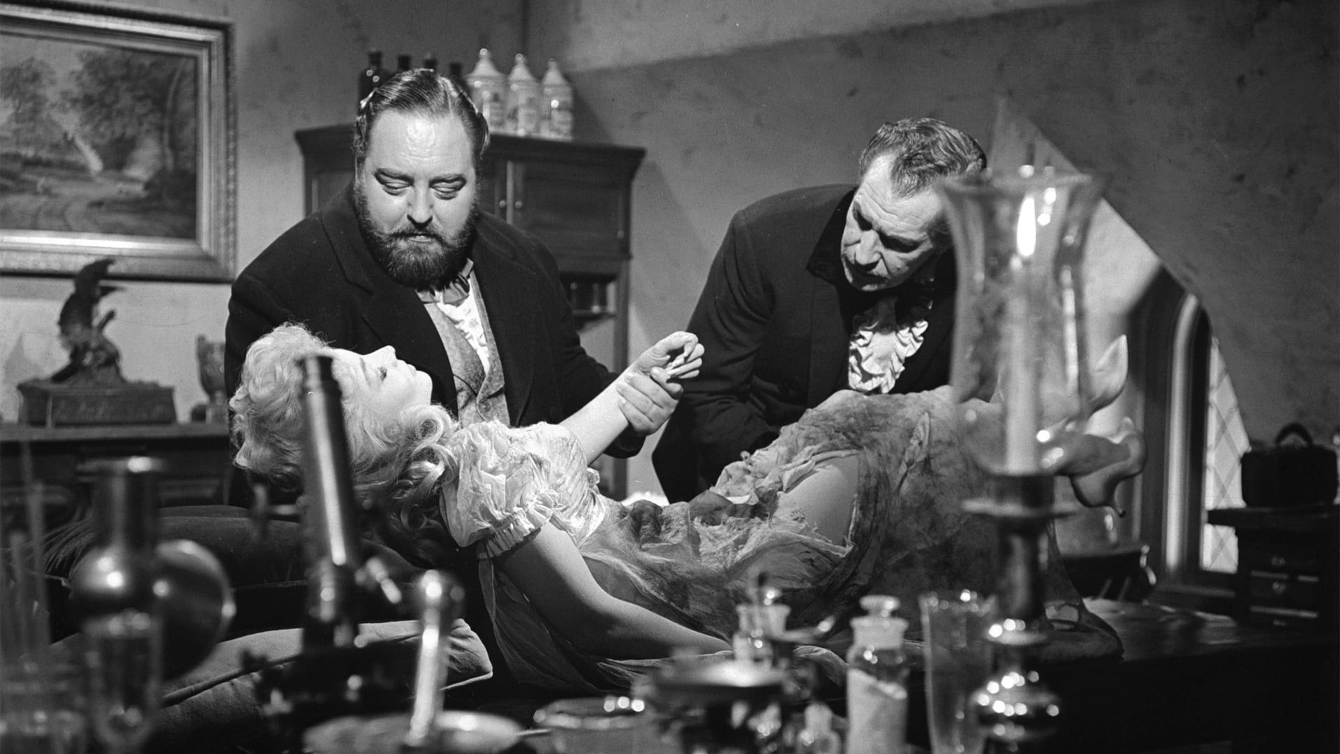 3 horror stories based on the writings of Nathaniel Hawthorne. In the 1st story titled “Dr. Heidegger’s Experiment”, Heidegger attempts to restore the youth of three elderly friends. In “Rappaccini’s Daughter”, a demented father is innoculating his daughter with poison so she may never leave her garden of poisonous plants. In the final story “The House of the Seven Gables”, The Pyncheon family suffers from a hundred year old curse and while in the midst of arguing over inheritance, a stranger arrives.