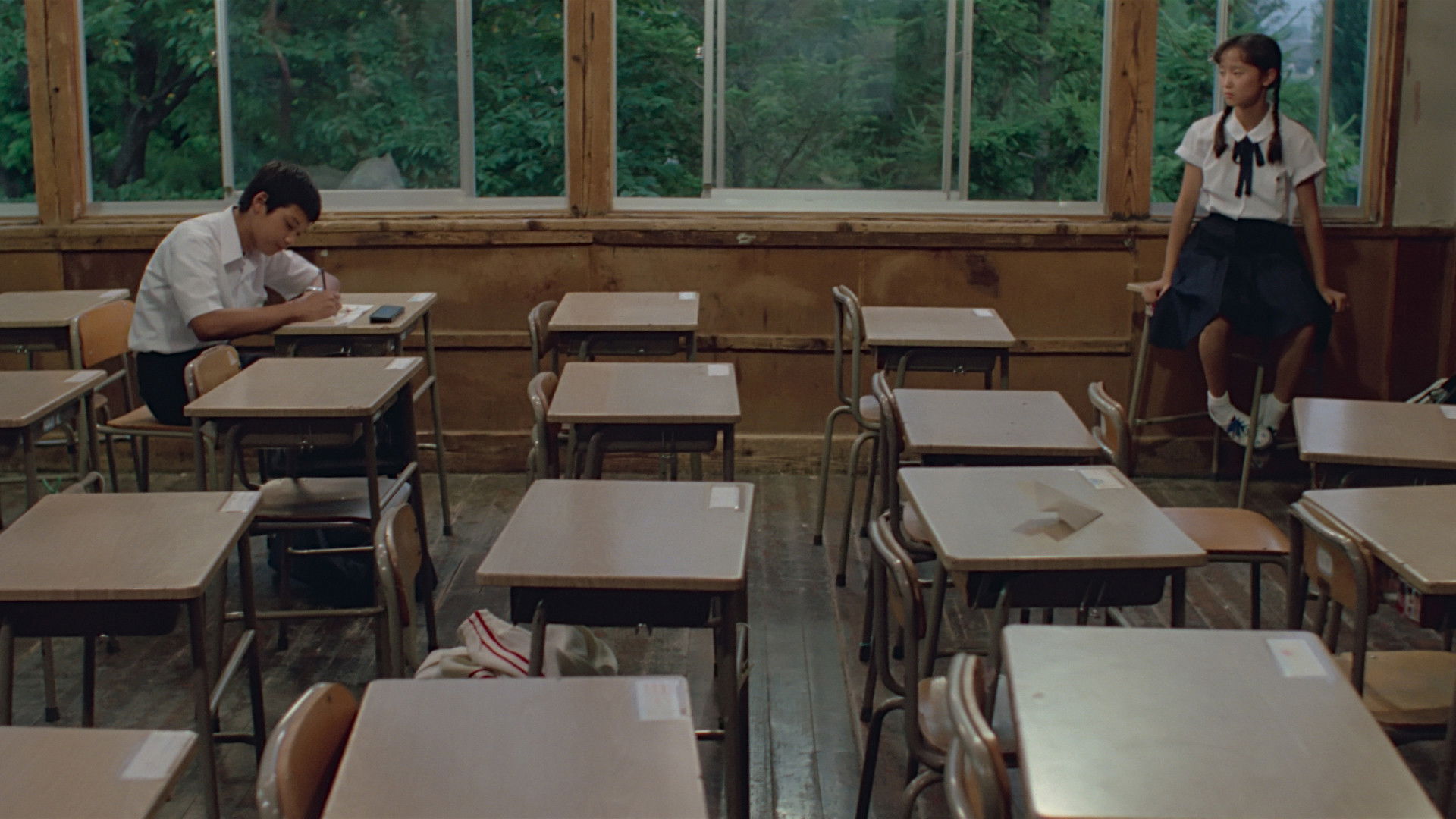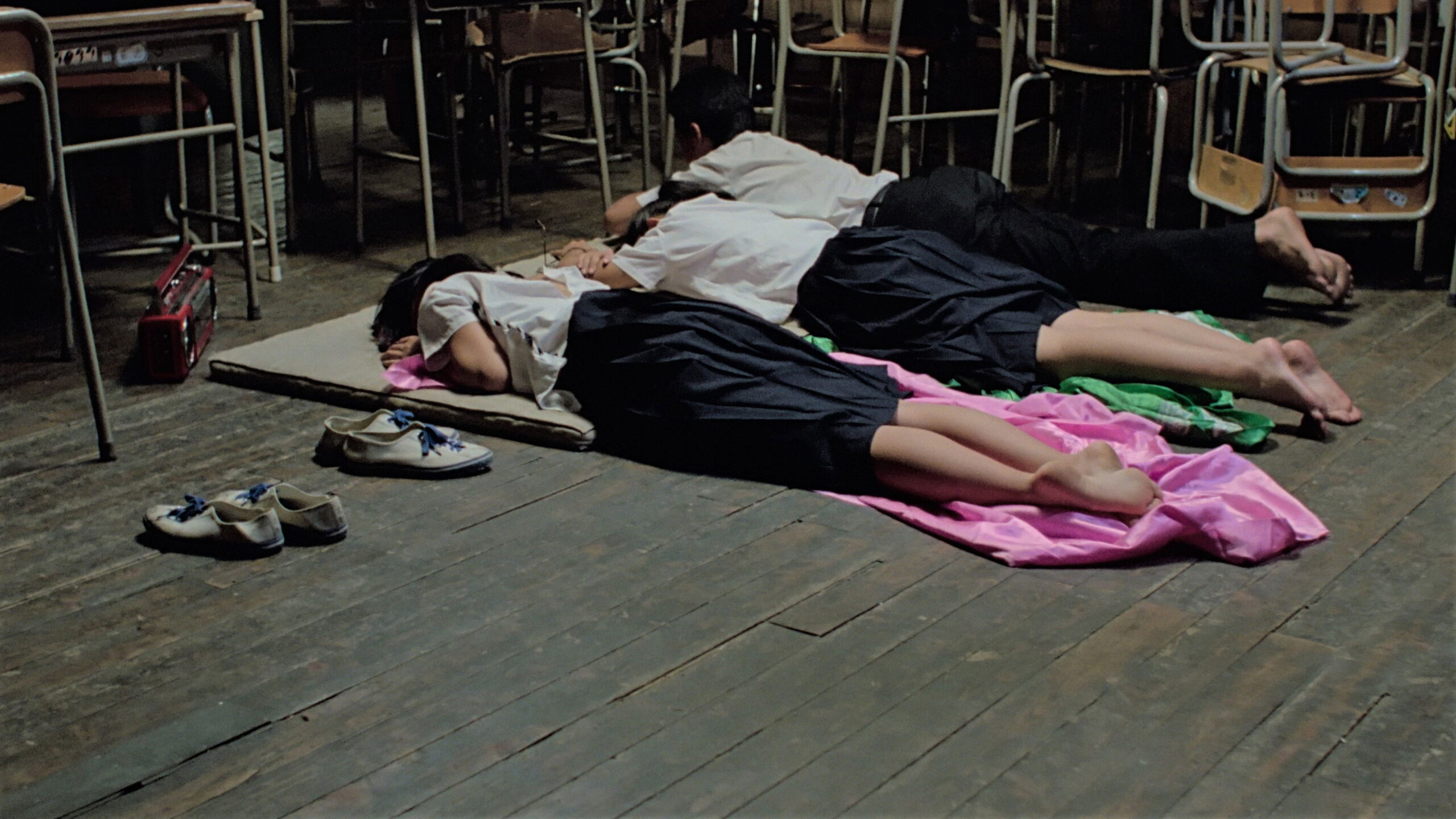 Offering a caustic immersion into the lives of disaffected junior high students on the cusp of adulthood, the film takes place over the 5-day period before, during, and after a ferocious, seemingly liberating typhoon, which six of the students endure while marooned in their school.