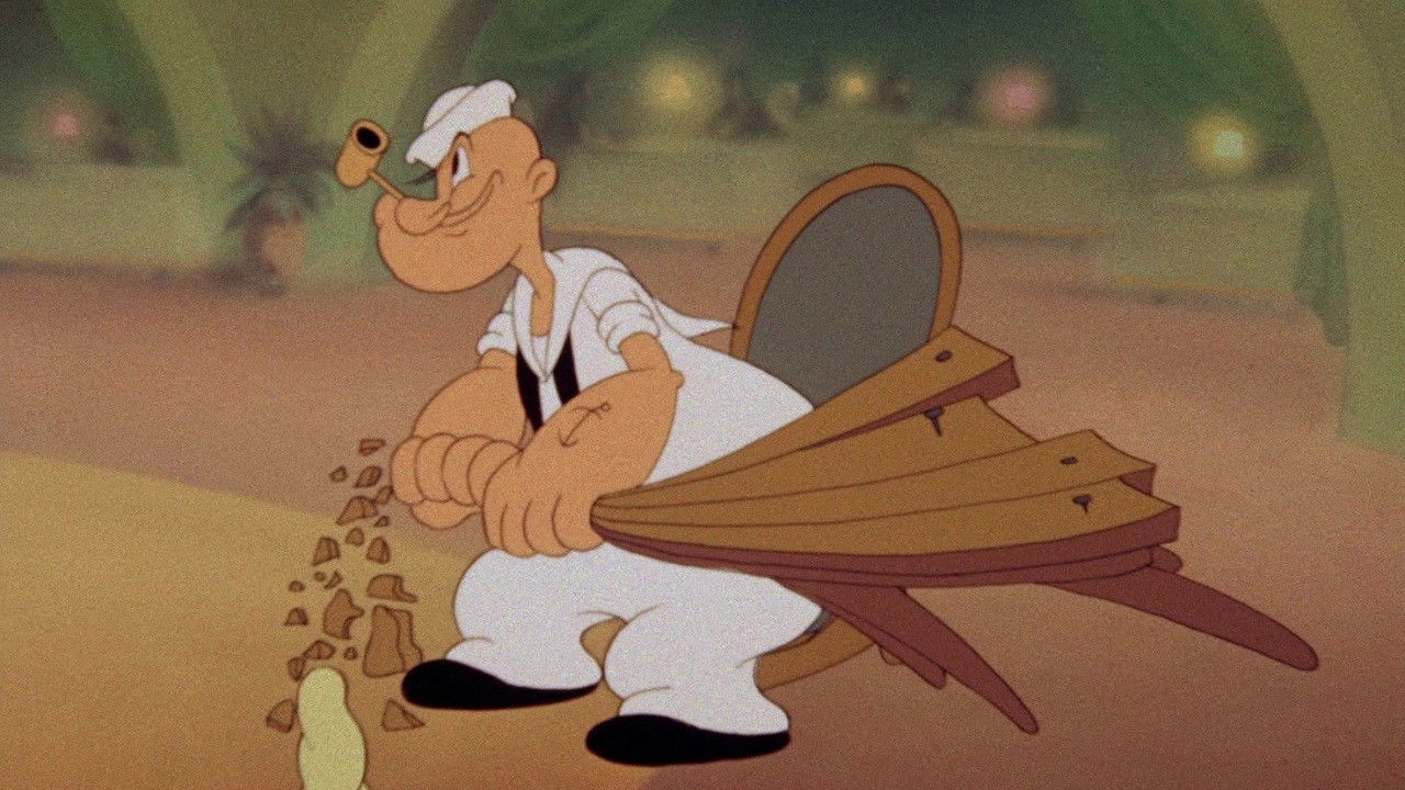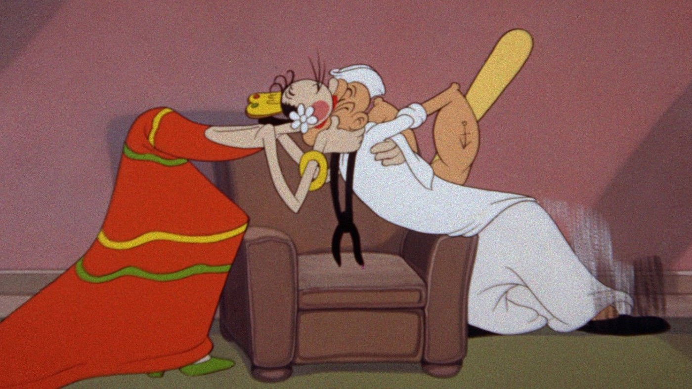 Actually, Popeye and Bluto are already there. They visit a nightclub, where the featured singer/dancer is, of course, Olive Oyl.