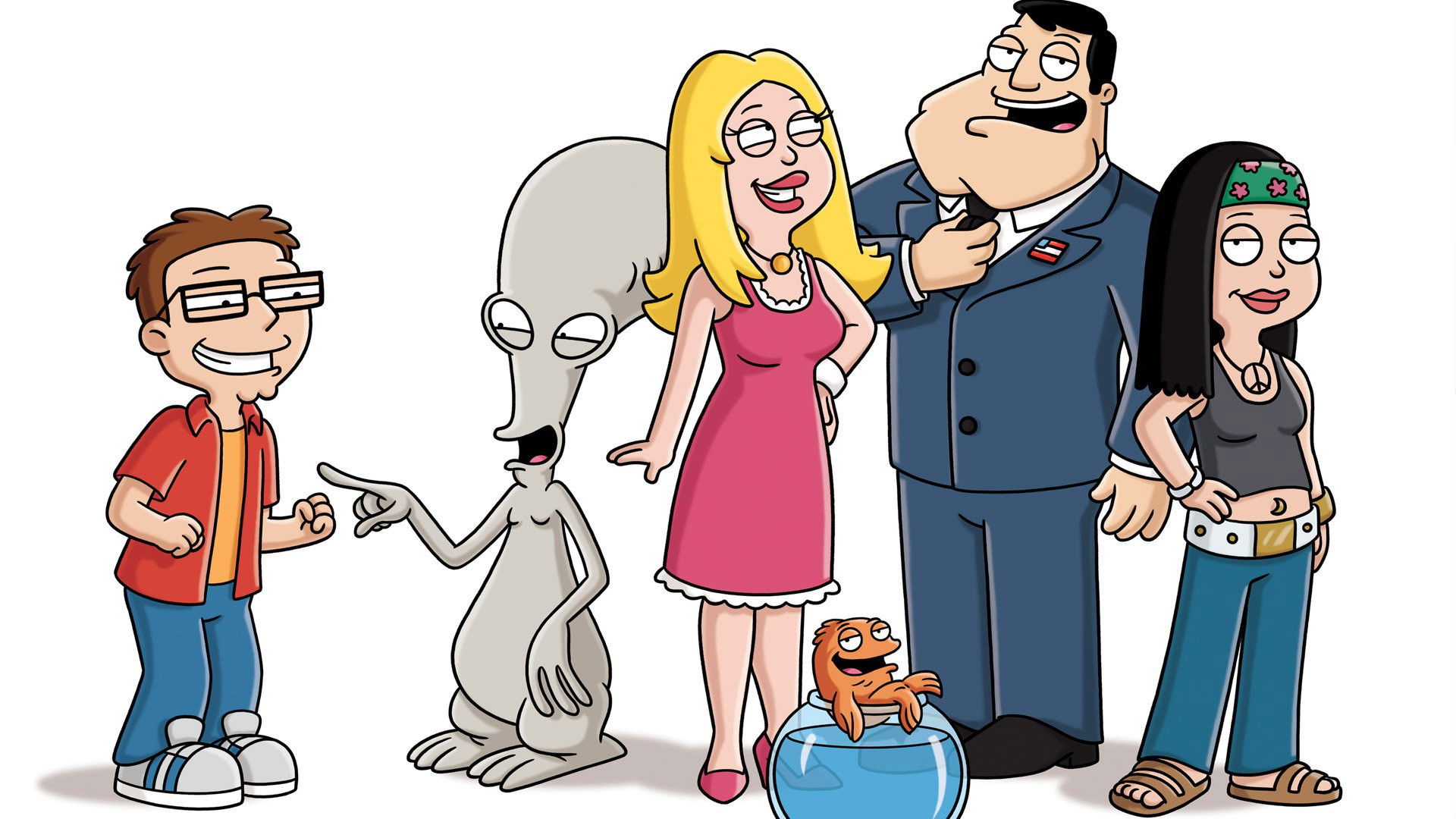 The series focuses on an eccentric motley crew that is the Smith family and their three housemates: Father, husband, and breadwinner Stan Smith; his better half housewife, Francine Smith; their college-aged daughter, Hayley Smith; and their high-school-aged son, Steve Smith. Outside of the Smith family, there are three additional main characters, including Hayley’s boyfriend turned husband, Jeff Fischer; the family’s man-in-a-goldfish-body pet, Klaus; and most notably the family’s zany alien, Roger, who is “full of masquerades, brazenness, and shocking antics.”