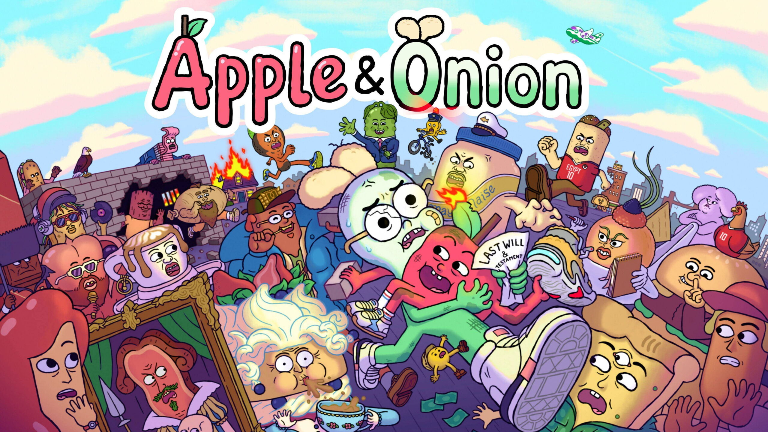 In a world of talking food, best mates Apple and Onion fumble through city life, tackling ordinary problems by extraordinary means.