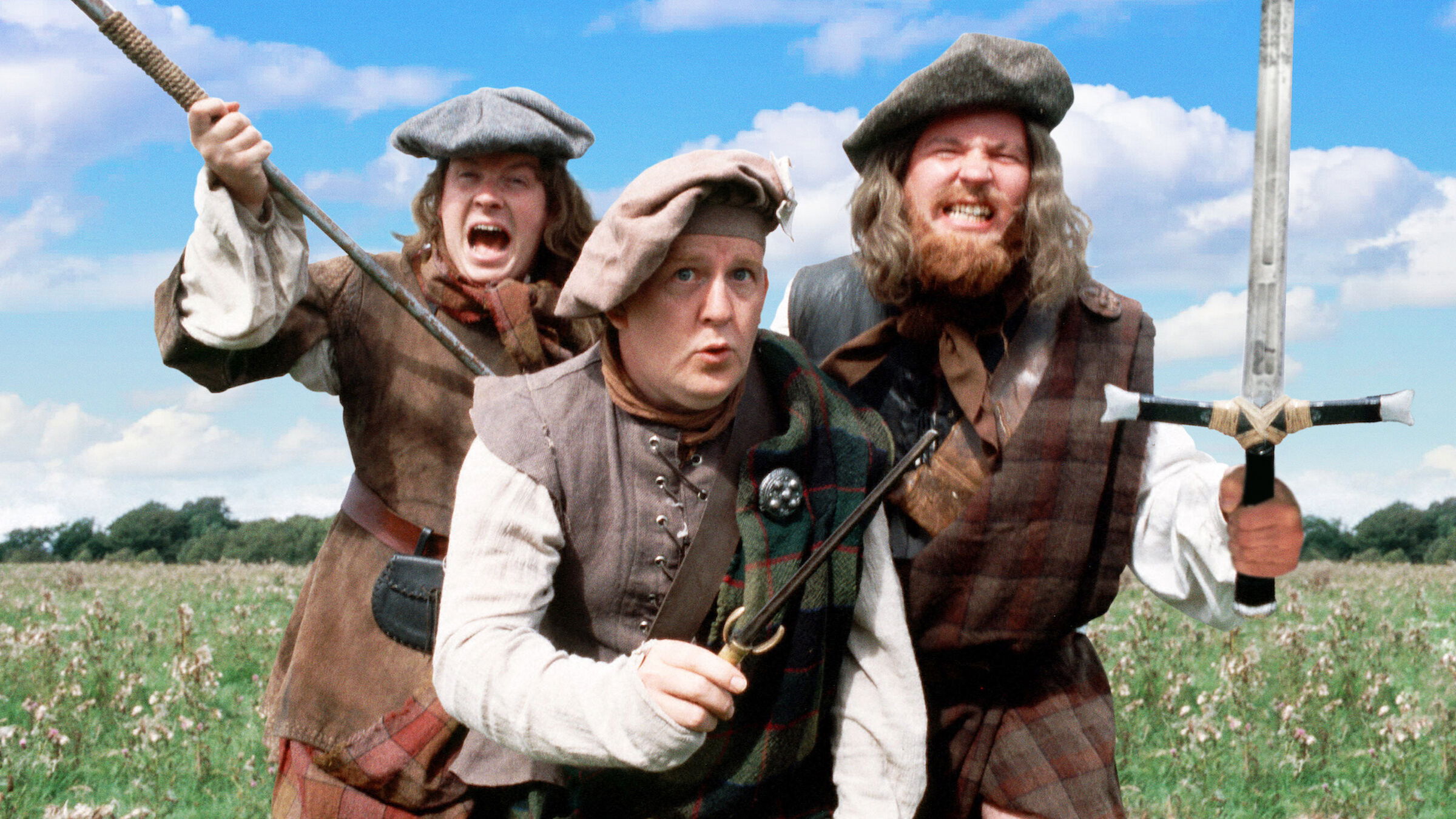 Chewin’ the Fat first started as a radio series on BBC Radio Scotland. The later television show, which ran for four series, was first broadcast on BBC One Scotland, but series three and four, as well as highlights from the first two series, were later broadcast to the rest of the United Kingdom. Although the last series ended in February 2002, 6 Hogmanay specials were broadcast and offered on DVD when purchasing the Scottish Sun between 2000 to 2005, one every year.