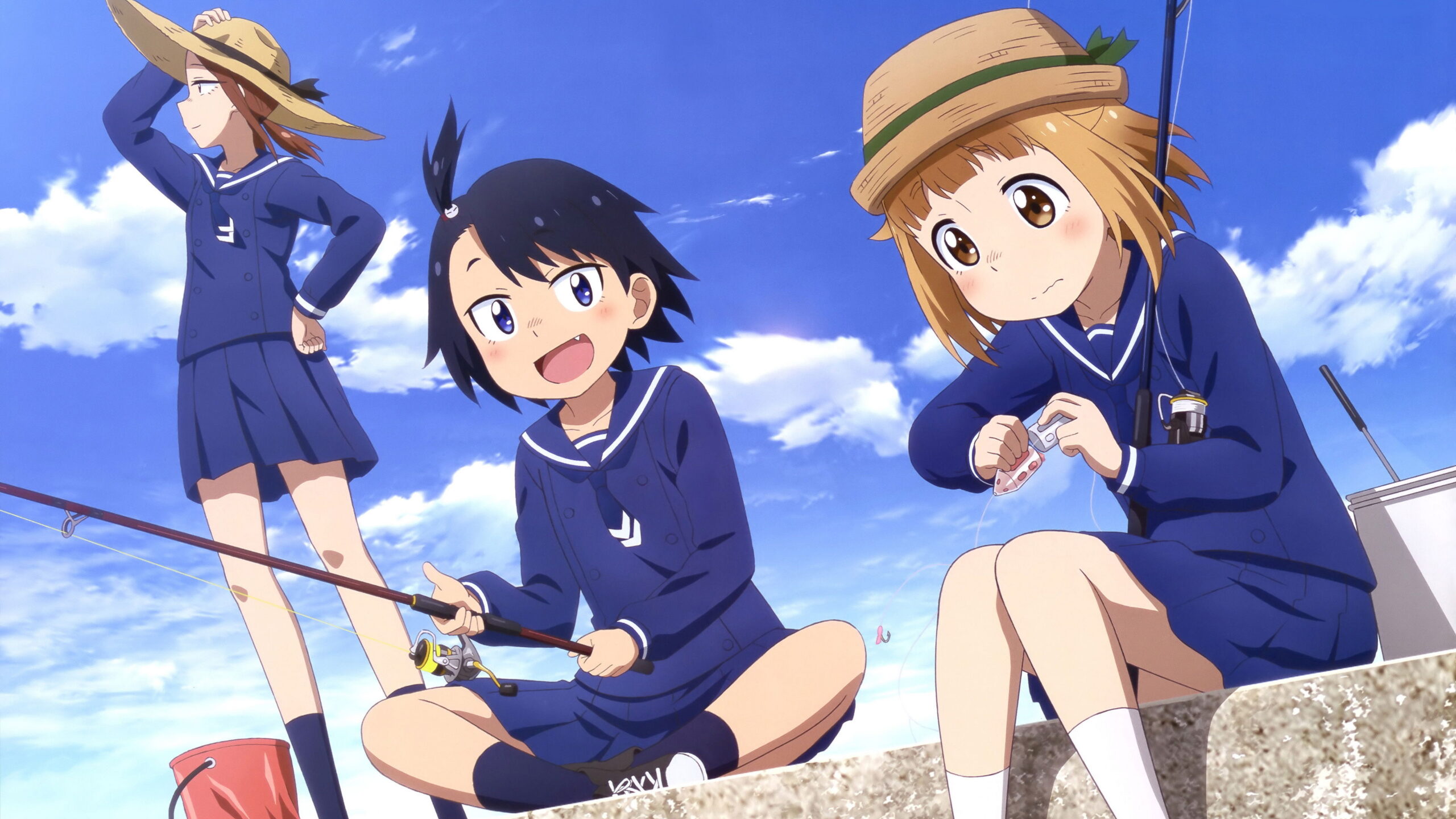 Hina Tsurugi and her family have just moved to a quaint seaside town. Hoping to savor the sight of the peaceful ocean, Hina stumbles upon a girl named Yuuki Kuroiwa—an upperclassman at her new school—who invites Hina to join her in fishing. Hina reels in an octopus, which falls onto her; being afraid of bugs and big creatures, she panics and begs Yuuki to remove it from her. Yuuki sees this as an opportunity to force Hina to join the school’s Breakwater Club—a club where members gather, catch, and eat various types of marine life as their main activity. Although her attempts to refuse to join fail, Hina slowly begins to discover the hidden joy in fishing. Her view on the sport changes, now looking forward to all the delightful experiences she can take part in alongside her fellow club members.