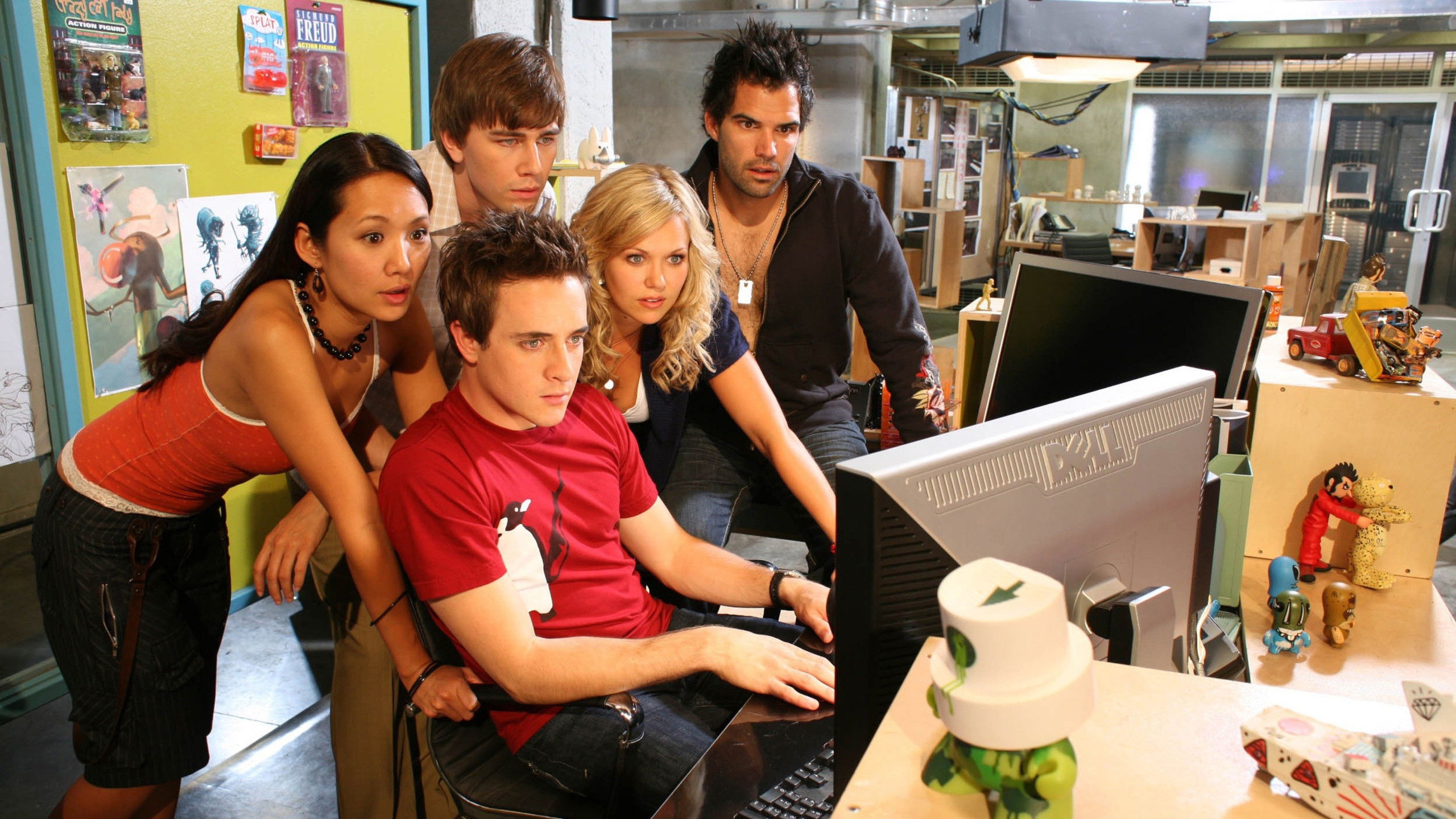 jPod is a comedic television series based on Douglas Coupland’s novel of the same name. It premiered on CBC Television on January 8, 2008. Starting with the fifth episode, the show began airing Fridays at 9:00.