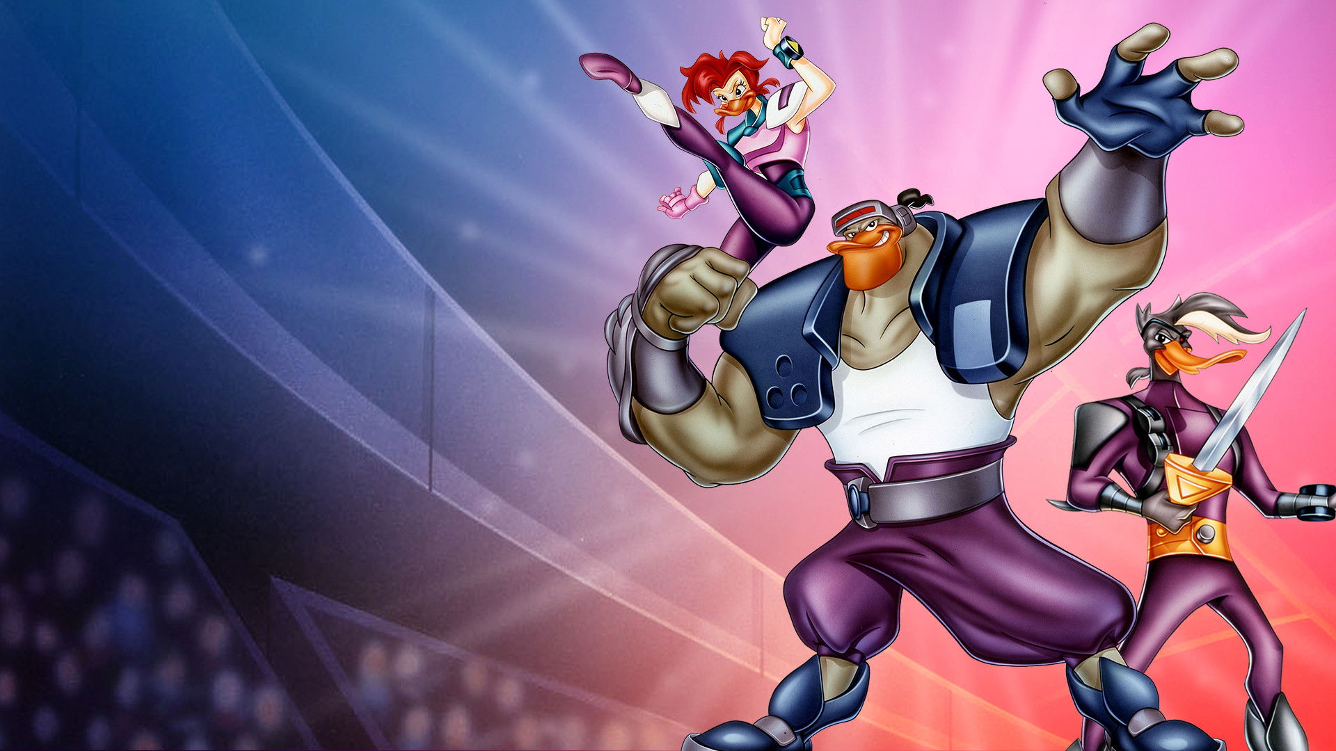 Puckworld is home to a race of hockey-loving humanoid ducks. When the sinister Dragaunus takes over the planet, a band of determined rebels, The Mighty Ducks, manage to chase him from the planet. During the fight, they are caught in a dimensional portal and end up stranded in Anaheim, CA. The Ducks form a hockey team and build a secret base under the Anaheim Pond so they can continue to fight Dragaunus and hopefully find a way home.