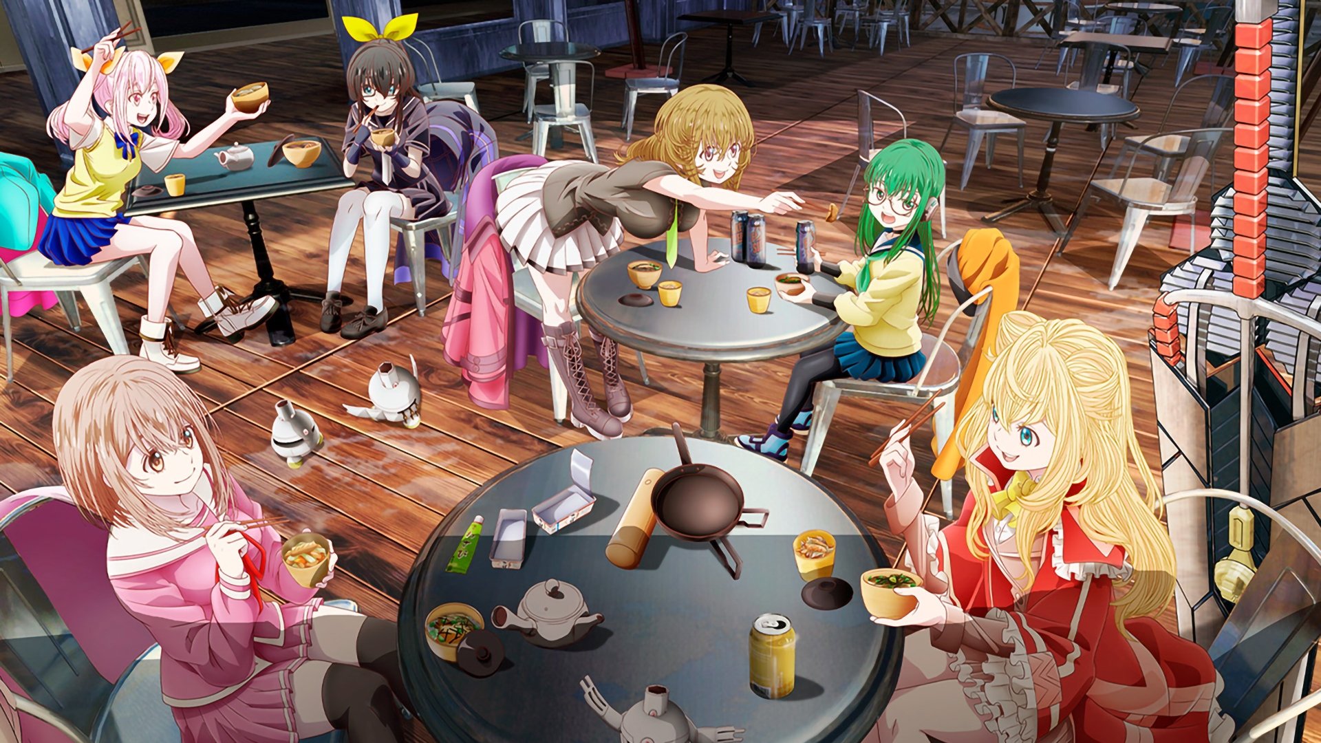Robotic invaders wiped out all life, but Renge fights to survive using her powers. With no memories, she roams the city until she meets five other young women, each with unique abilities. Together, they make the most of their lives, cooking delicious meals between battles with mechanical monstrosities. As they uncover the secrets of their powers and pasts, they find strength in their friendship.