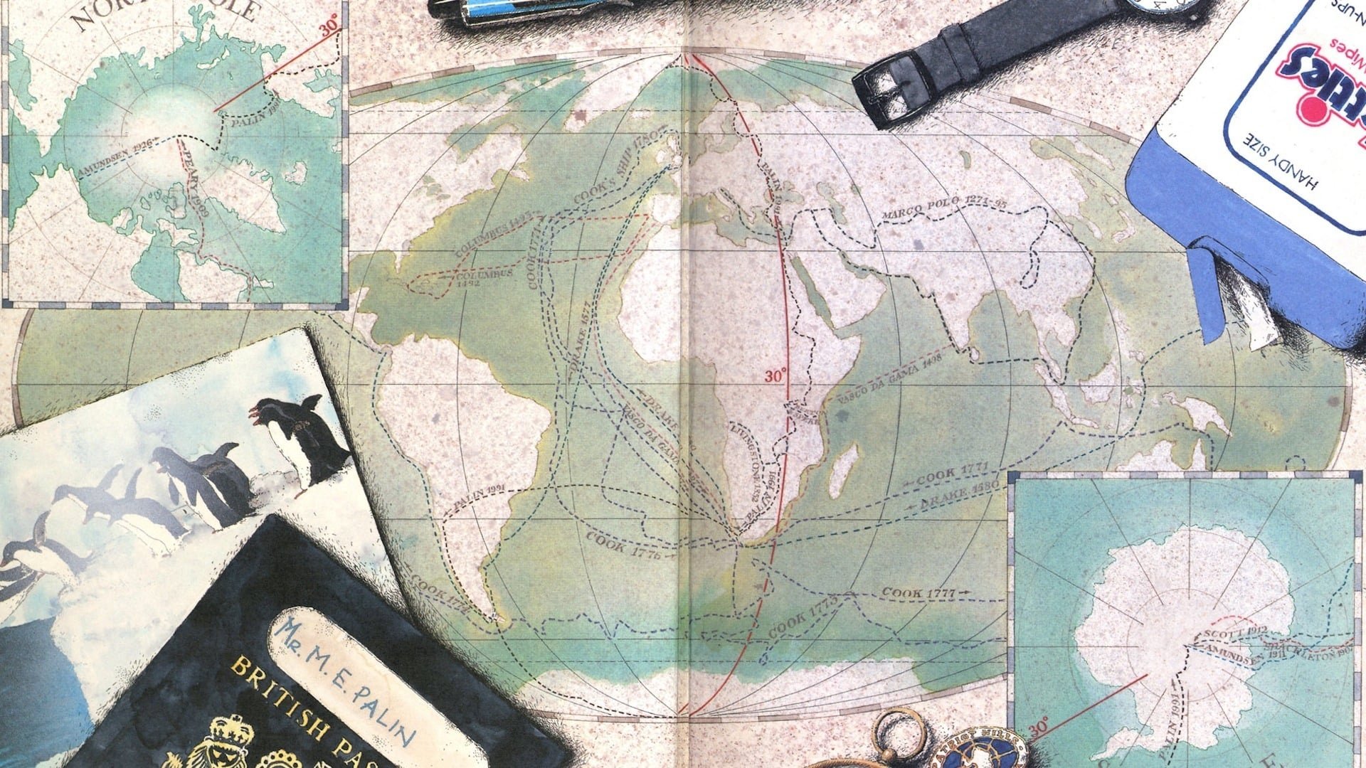 Michael Palin undertakes an epic journey of 23,000 miles, traveling from the North to the South Pole across 17 countries with a minimum of air travel, all on a tight deadline.