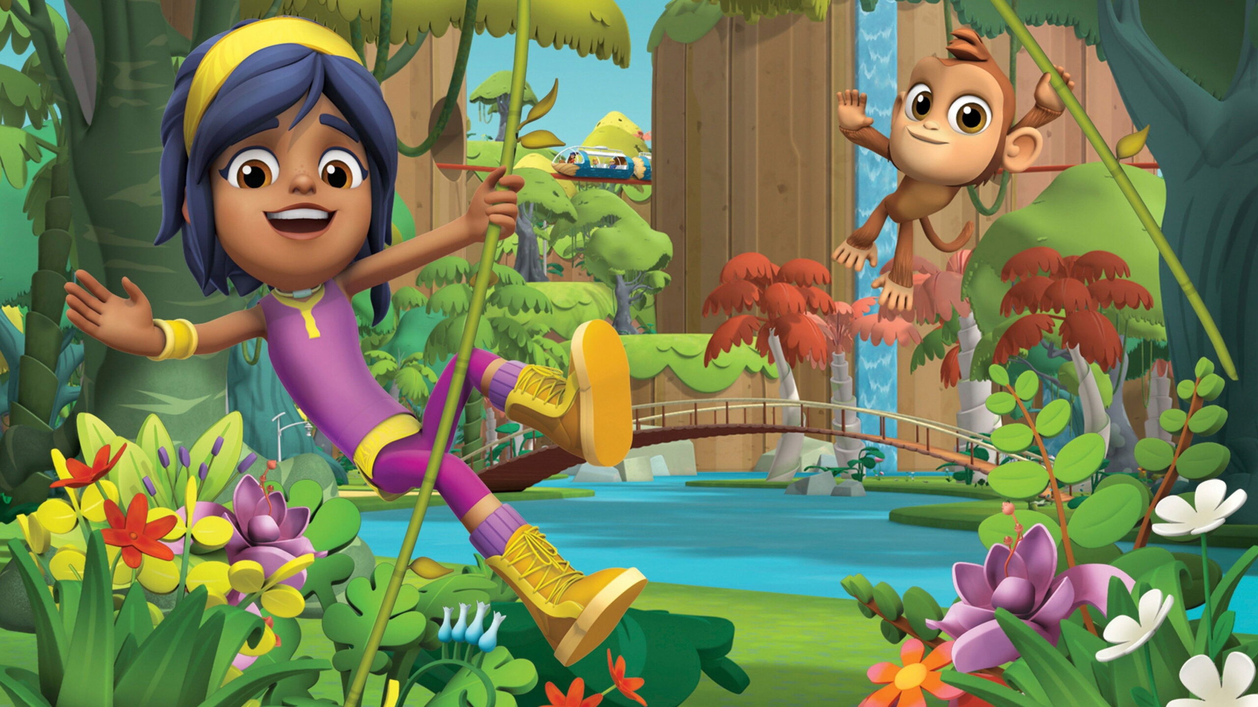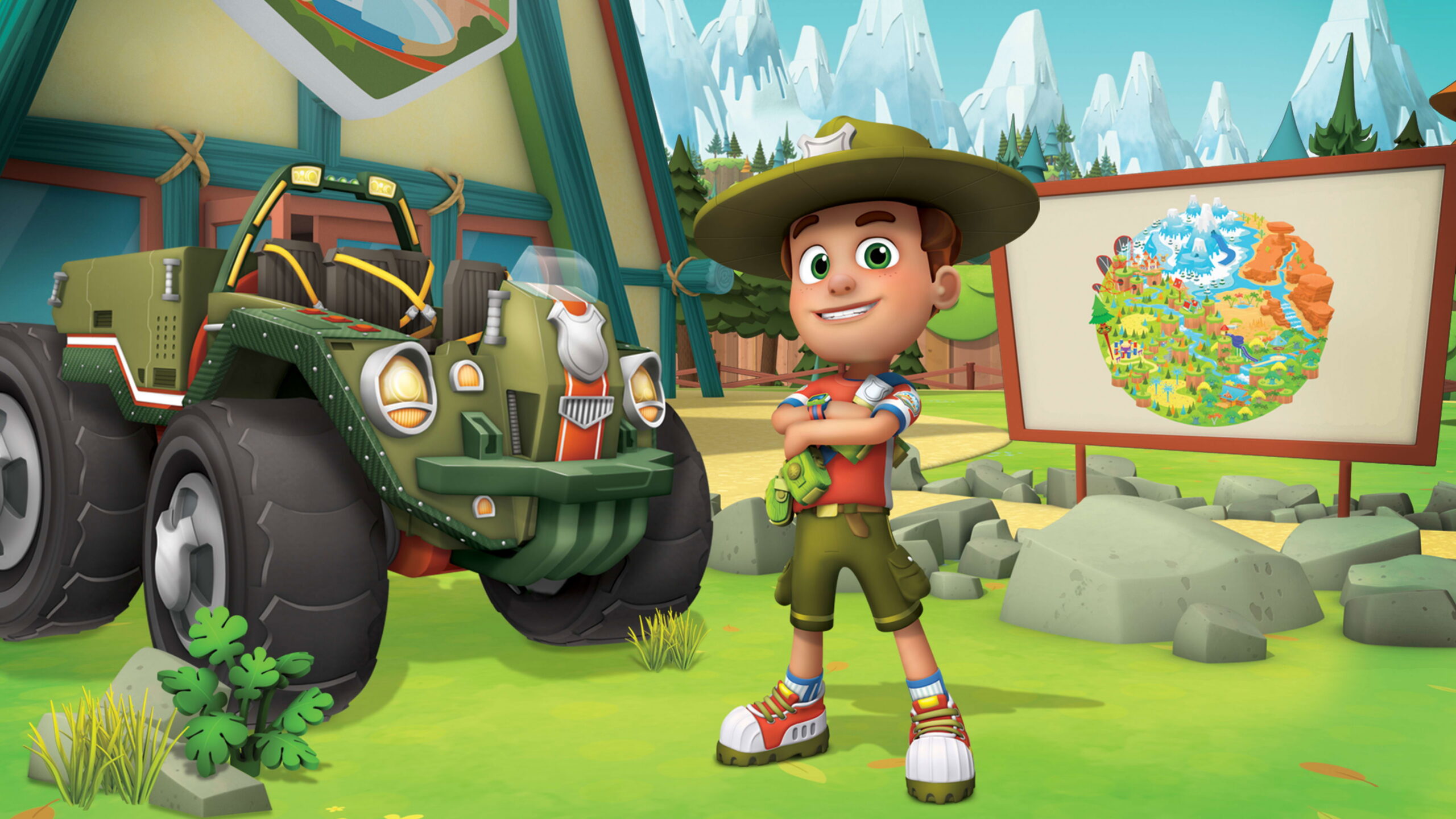 Adventurous Ranger Rob’s favorite thing to do is go outside to play, explore and discover. That’s easy for him to do at Big Sky Park, the coolest outdoor adventure park around. Along with his best friends, swinging sidekick Dakota and friendly yeti Stomper, the brave ranger zip lines, vine-swings and snowboards his way around the park to discover new places, from the desert to the frosted fields