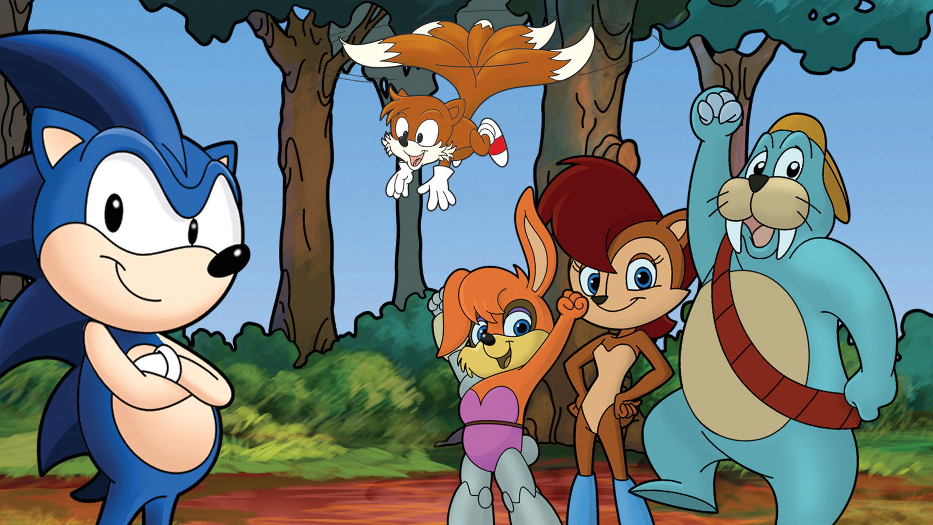 Sonic, Tails, Princess Sally, and a band of freedom fighters battle to overthrow Dr. Robotnik, a despotic dictator who conquered their home planet Mobius years ago, and rules it as a polluted industrial dystopia.