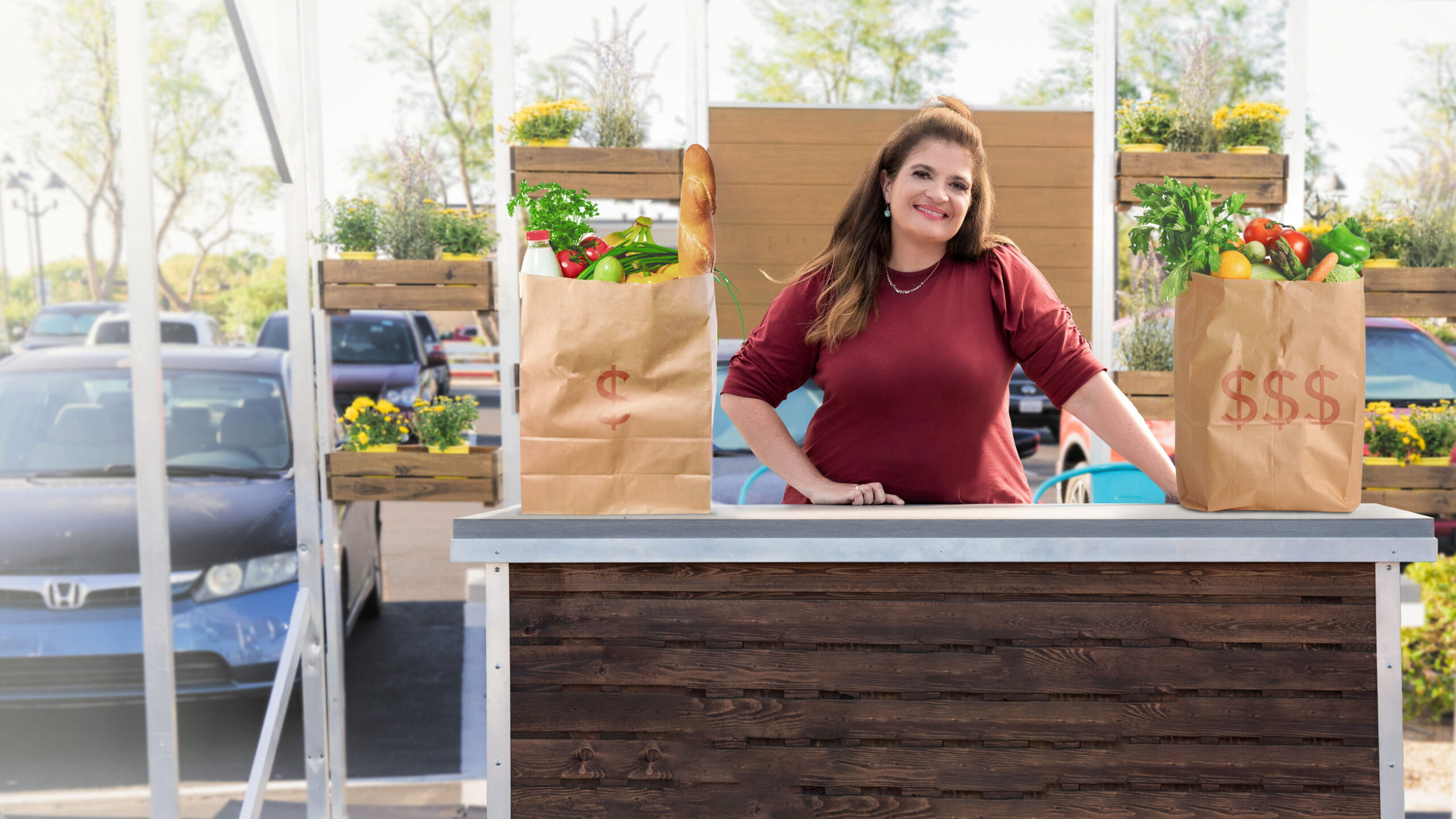 Alex Guarnaschelli hosts as chefs square off in a competitive pop-up kitchen outside a grocery store. To make their challenge dishes, the chefs must size up shoppers as they exit the store and negotiate for their grocery bags.
