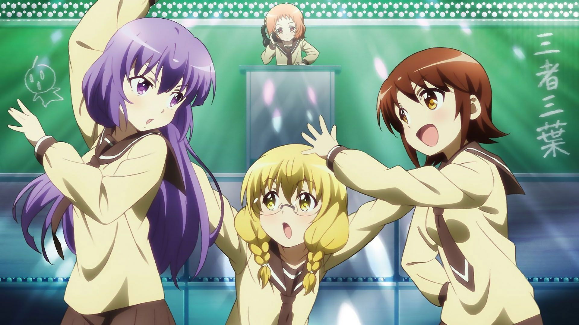 Futaba Odagiri is incredibly energetic but is also a glutton. Teru Hayama looks like an angel but she is really a demonic class president. Yoko Nishikawa is the daughter of family that used to be a member of the upper class, but after her father’s company went bankrupt, they became poor. All three high school girls have the kanji for “leaf” in their name but could not be any different from one another.