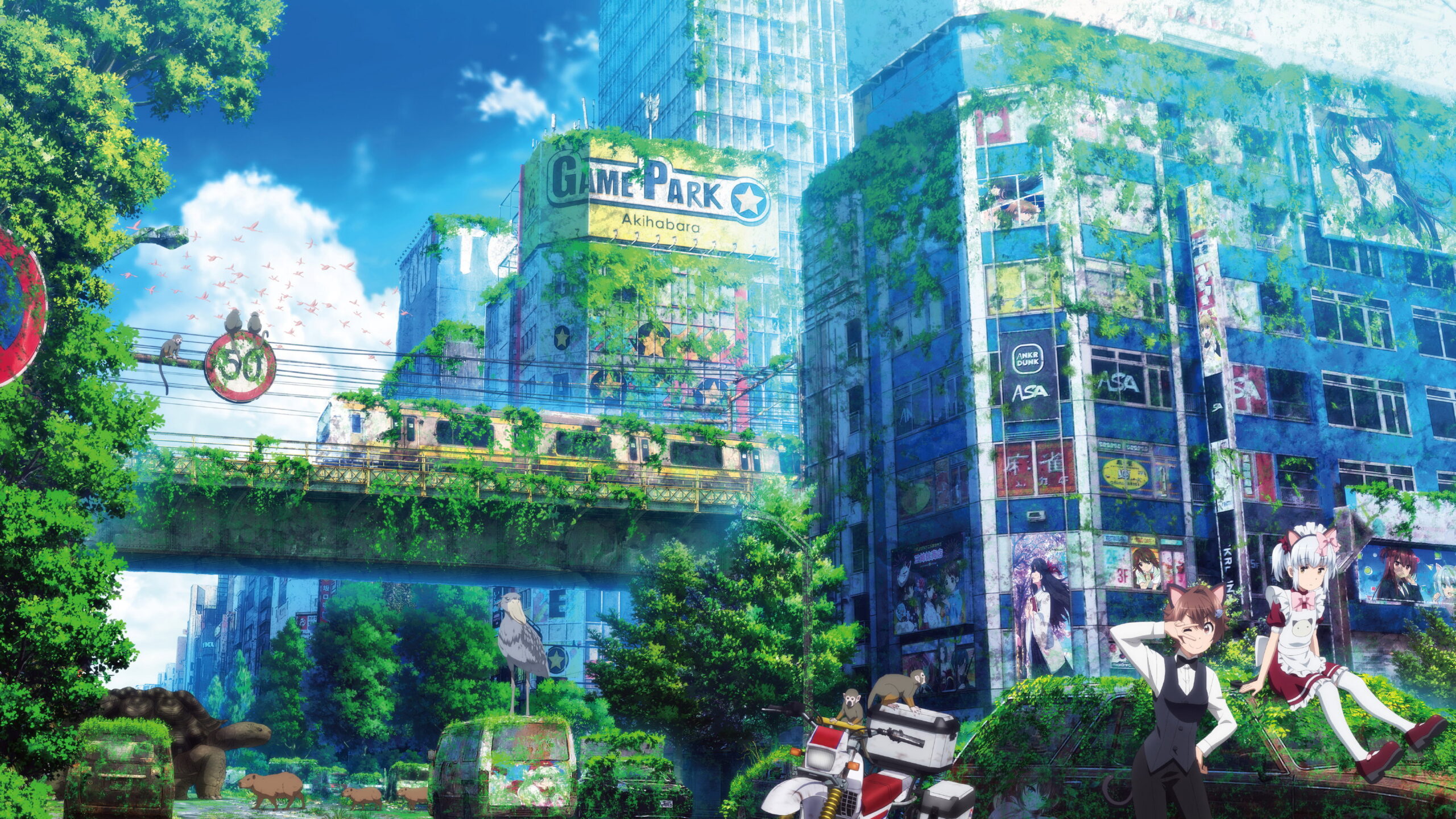 Two young girls, Yoko and Airi, travel through the empty world of post-apocalyptic Japan. They photograph the scenery of famous places and camp out in towns overtaken by nature. Together, they ride on a Serow off-road motorbike and experience a new sense of freedom, unbothered by neither traffic nor traffic lights. The world is over now, so let’s hop on a bike and go on a journey!